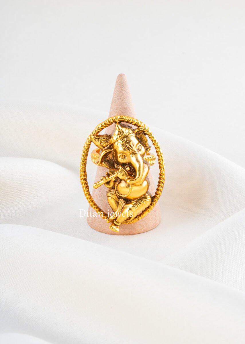 Divine Ganesha Sculpture Ring (Yellow...