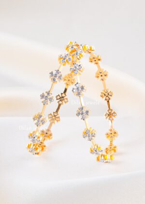 🔵 Metal: German Silver (Silver Alloy) 🔵 Stones: AAA+ Quality American Diamonds 🔵 Plating: Victory-Gold 🔵 Lifetime Guarantee on stones 🔵 For Jewellery Care, please refer here 🔵 For Exchange Policy, please refer here