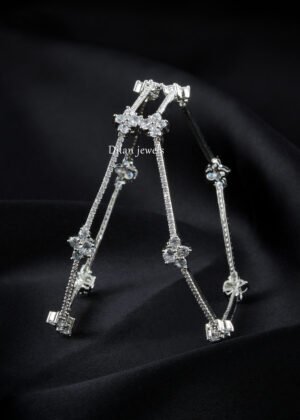 🔵 Metal: German Silver (Silver Alloy) 🔵 Stones: AAA+ Quality American Diamonds 🔵 Closure Type: Push Back 🔵 Length: 4.75cm 🔵 Plating: Silver 🔵 Lifetime Guarantee on stones 🔵 For Jewellery Care, please refer here 🔵 For Exchange Policy, please refer here