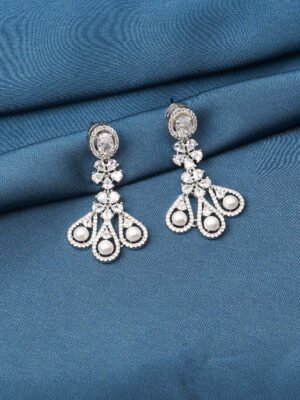 🔵 Metal: German Silver (Silver Alloy) 🔵 Stones: AAA+ Quality American Diamonds 🔵 Closure Type: Push Back 🔵 Earring Length: 2.75 cm 🔵 Plating: White-Gold 🔵 Lifetime Guarantee on stones 🔵 For Jewellery Care, please refer here 🔵 For Exchange Policy, please refer here
