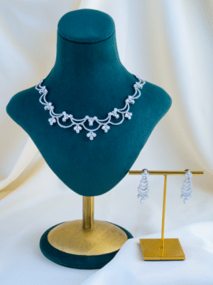 🔵 Metal: German Silver (Silver Alloy) 🔵 Stones: AAA+ Quality American Diamonds 🔵 Plating: White-Gold 🔵 Lifetime Guarantee on stones 🔵 For Jewellery Care, please refer here 🔵 For Exchange Policy, please refer here