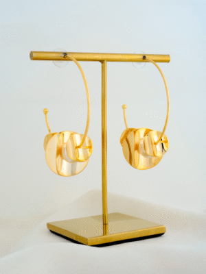 🔵 Metal: German Silver (Silver Alloy) 🔵 Earring Length: 6.50cm 🔵 Closure Type: Hoops 🔵 Plating: Yellow Gold 🔵 For Jewellery Care, please refer here 🔵 For Exchange Policy, please refer here