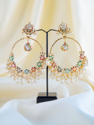 Noor Navratna Chandbali (Yellow Gold)...