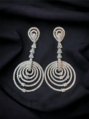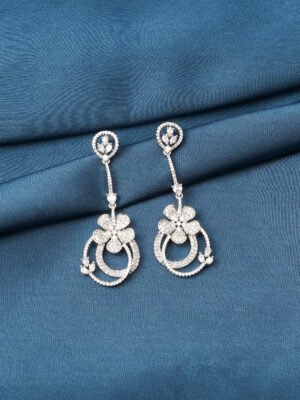 🔵 Metal: German Silver (Silver Alloy) 🔵 Stones: AAA+ Quality American Diamonds 🔵 Plating: White-Gold 🔵 Earring Length : 5.00cm 🔵 Closure: Push-back 🔵 Lifetime Guarantee on stones 🔵 For Jewellery Care, please refer here 🔵 For Exchange Policy, please refer here