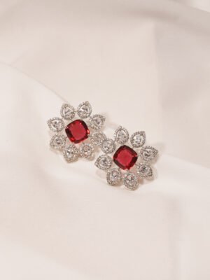 Red Statement Studs (Silver) EAR000437