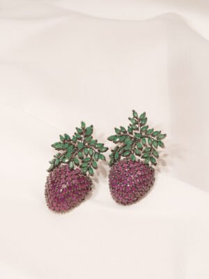 🔵 Metal: German Silver (Silver Alloy) 🔵 Stones: AAA+ Quality American Diamonds 🔵 Plating: Black-Rhodium Finish 🔵 Earring Length : 5.00cm 🔵 Closure: Push-back 🔵 Lifetime Guarantee on stones 🔵 For Jewellery Care, please refer here 🔵 For Exchange Policy, please refer here