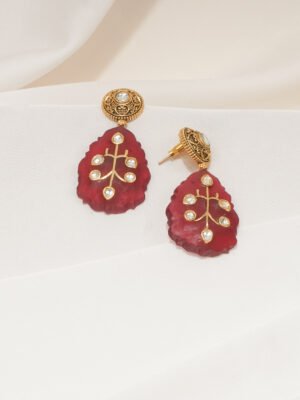 Trending Kundan Red Earrings (Yellow...