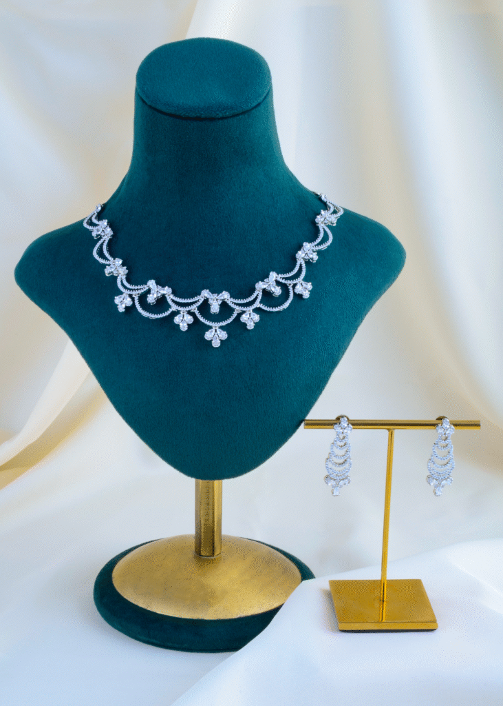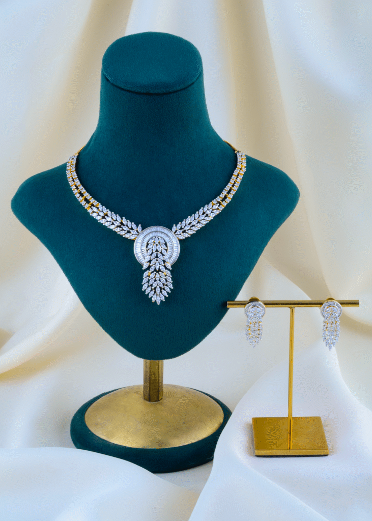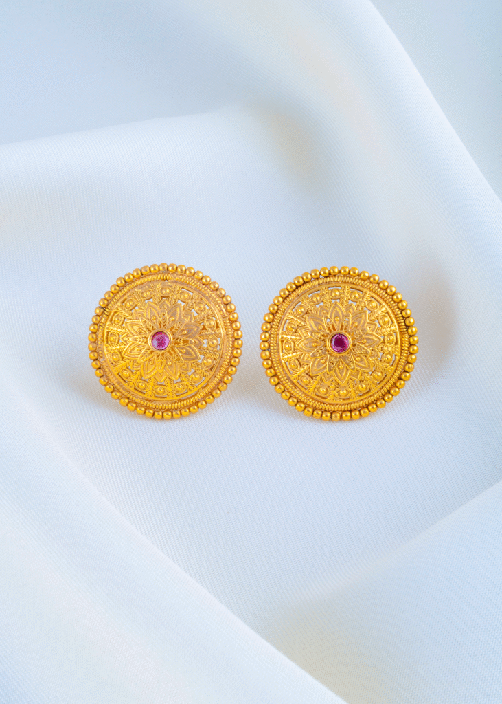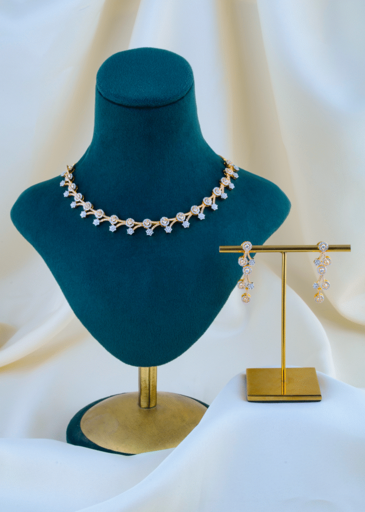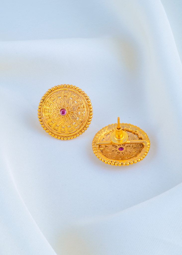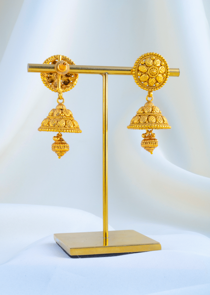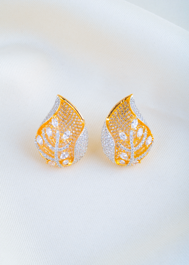 🔵 Metal: German Silver (Silver Alloy) 🔵 Stones: AAA+ Quality American Diamonds 🔵 Closure Type: Push Back 🔵 Earring Length: 3.00cm 🔵 Plating: Yellow-Gold 🔵 Lifetime Guarantee on stones 🔵 For Jewellery Care, please refer here 🔵 For Exchange Policy, please refer here