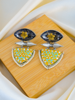 🔵 Metal: German Silver (Silver Alloy) 🔵 Earring Length: 6.00cm 🔵 Closure Type: Push Back 🔵 Plating: Dual Plating 🔵 For Jewellery Care, please refer here 🔵 For Exchange Policy, please refer here