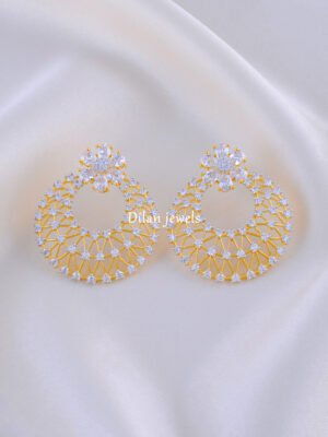 🔵 Metal: German Silver (Silver Alloy) 🔵 Stones: AAA+ Quality American Diamonds 🔵 Closure Type: Hoops 🔵 Earring Length: 3.25cm 🔵 Plating: Yellow-Gold 🔵 Lifetime Guarantee on stones 🔵 For Jewellery Care, please refer here 🔵 For Exchange Policy, please refer here