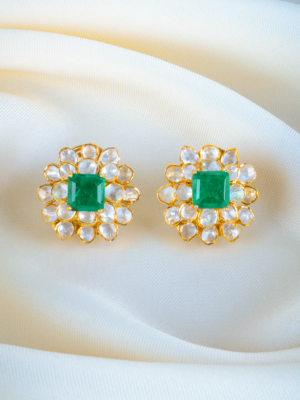 ₹ 9,999.00925Silver Moissanite Polki Stud Earrings...