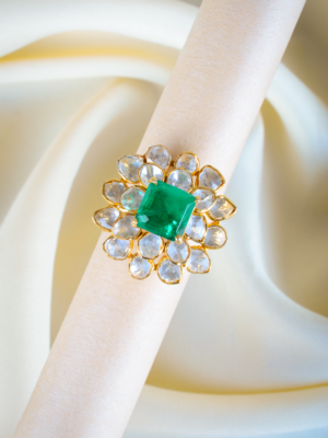 ₹ 27,999.00925Silver Moissanite Polki Green...