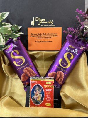 2.16$👉 Add-on Pack of 5 Dairy Milk Chocolates (24 gms each) 👉 Comes with Complimentary Roli & personalized message (kindly add message at the time of checkout) 👉 This chocolate pack is ONLY available as an add-on Pack with your Rakhi order.