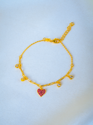 Red Heart Charm Bracelet (Yellow Gold) BRA001328