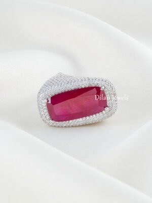 Red Gemstone Diamond Ring (Silver) RING02426