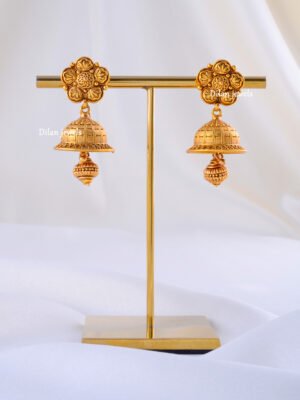 Goddess Lakshmi Gold Plated Jhumkas (Yellow Gold) EAR002372