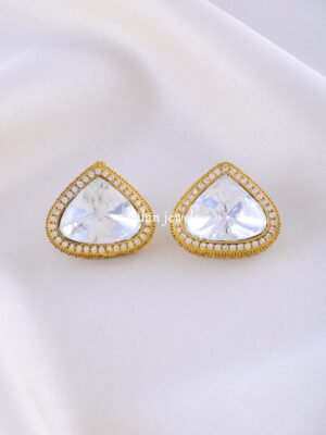 🔵 Metal: German Silver (Silver Alloy) 🔵 Stones: AAA+ Quality American Diamonds 🔵 Closure Type: Hoops 🔵 Earring Length: 3.25cm 🔵 Plating: Yellow-Gold 🔵 Lifetime Guarantee on stones 🔵 For Jewellery Care, please refer here 🔵 For Exchange Policy, please refer here