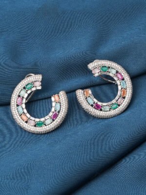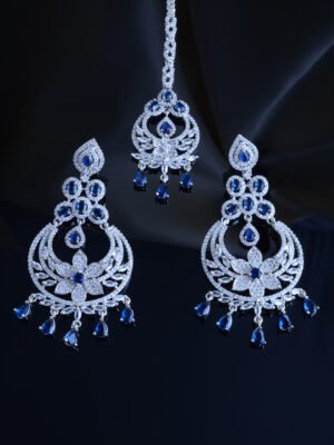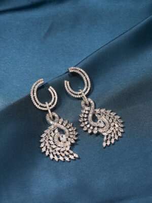 🔵 Metal: German Silver (Silver Alloy) 🔵 Stones: AAA+ Quality American Diamonds 🔵 Lifetime Guarantee on stones 🔵 Metal: German Silver (Silver Alloy) 🔵 Earring Length: 3.25cm 🔵 Closure Type: Push Back 🔵 Plating: Silver Finish 🔵 For Jewellery Care, please refer here 🔵 For Exchange Policy, please refer here