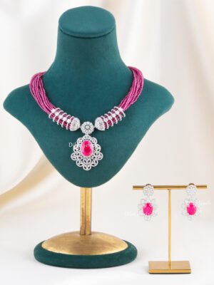 Regal Pink Gemstone Necklace Set (Yellow Gold) NEC002403