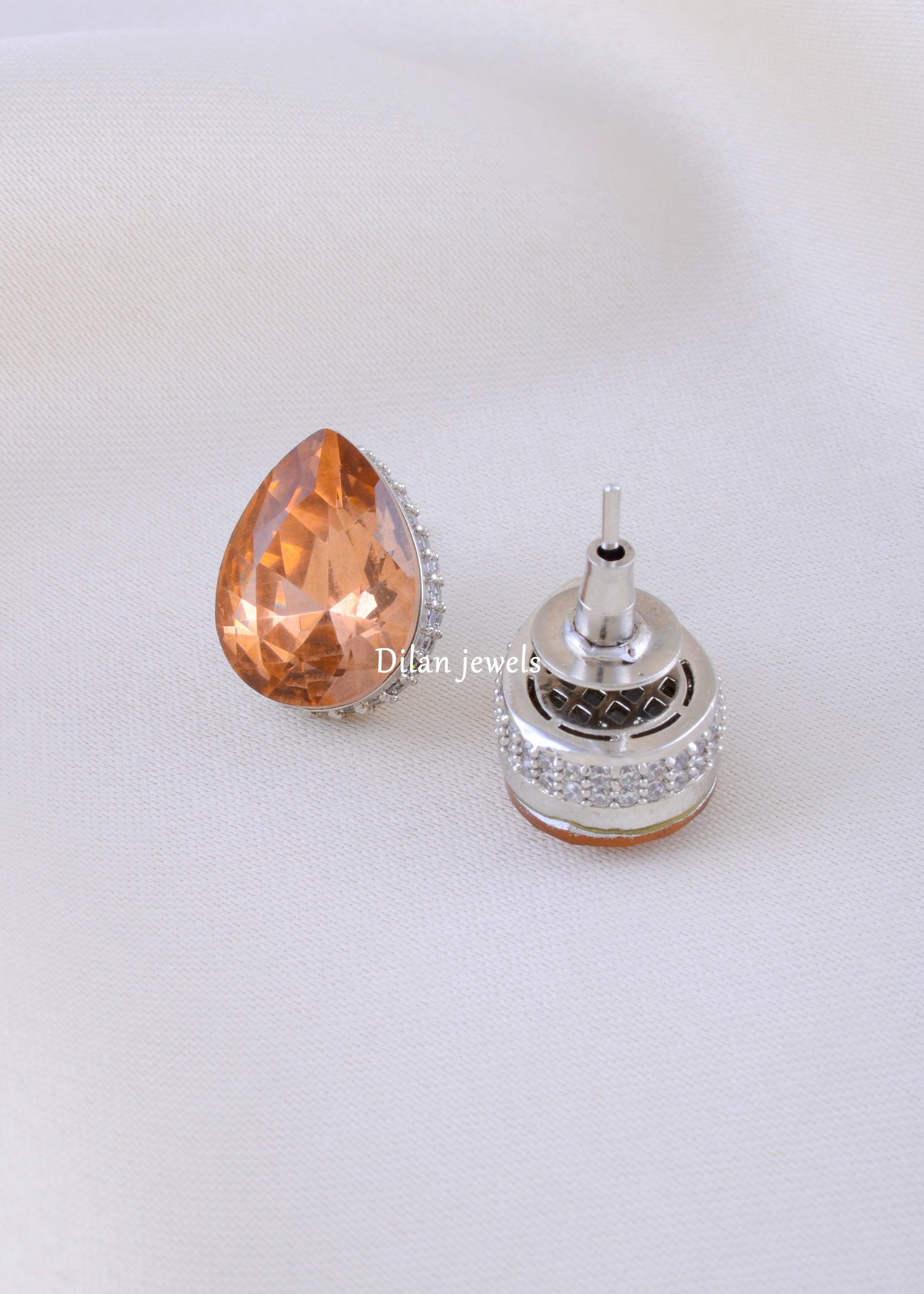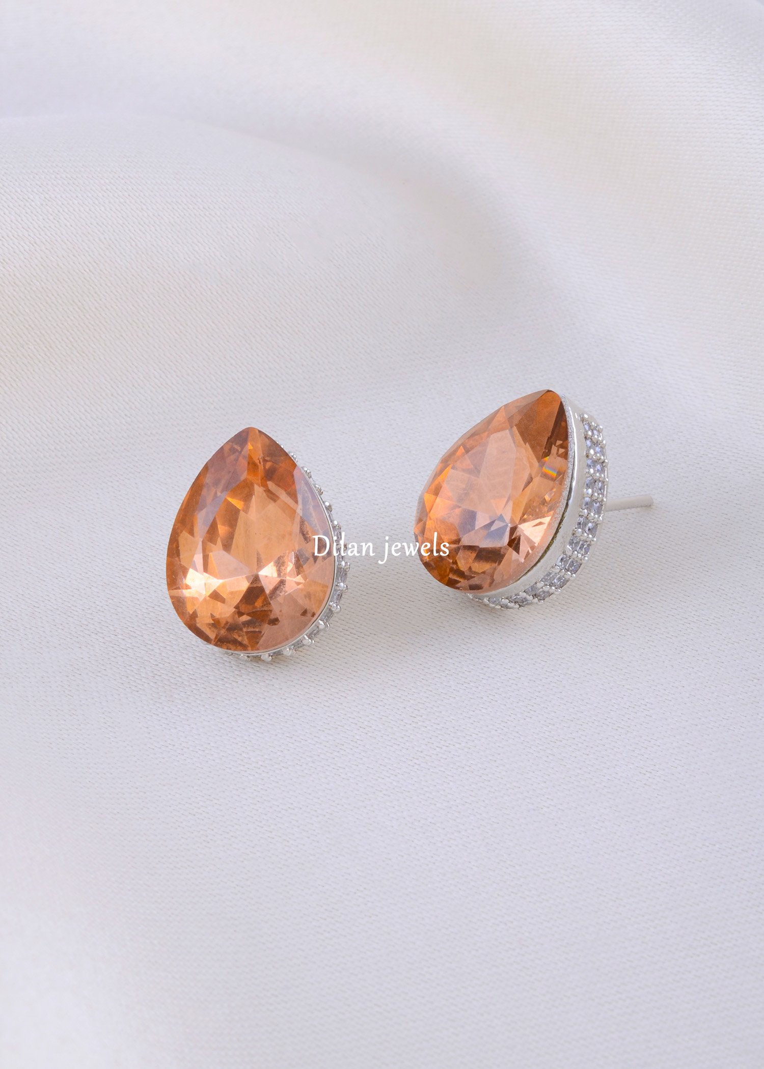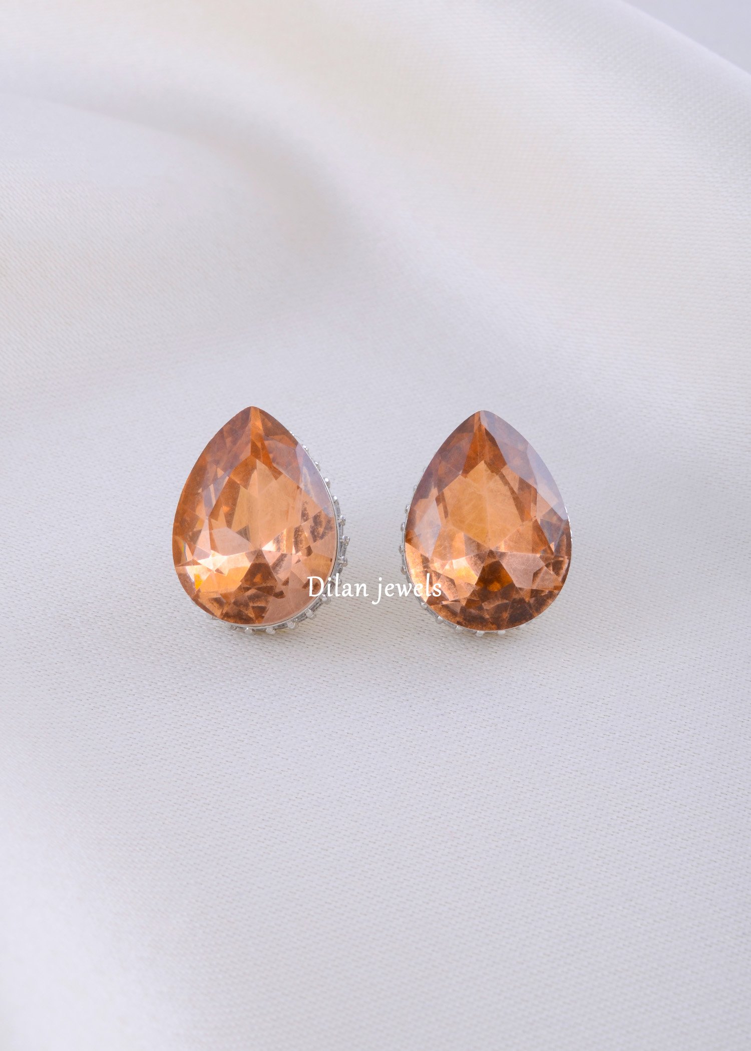 These stunning statement studs are crafted in high-quality German silver and embellished with radiant AAA-grade American diamonds. The teardrop crystal in a warm amber-gold shade catches the light beautifully, adding a luxurious sparkle to any outfit. Lightweight, durable, and comfortable for all-day wear, they’re the perfect blend of elegance and modern glamour. Ideal for festive occasions, weddings, parties, or everyday luxury styling. Their chic finish and brilliant shine make them a timeless accessory that elevates your jewellery collection with effortless sophistication.