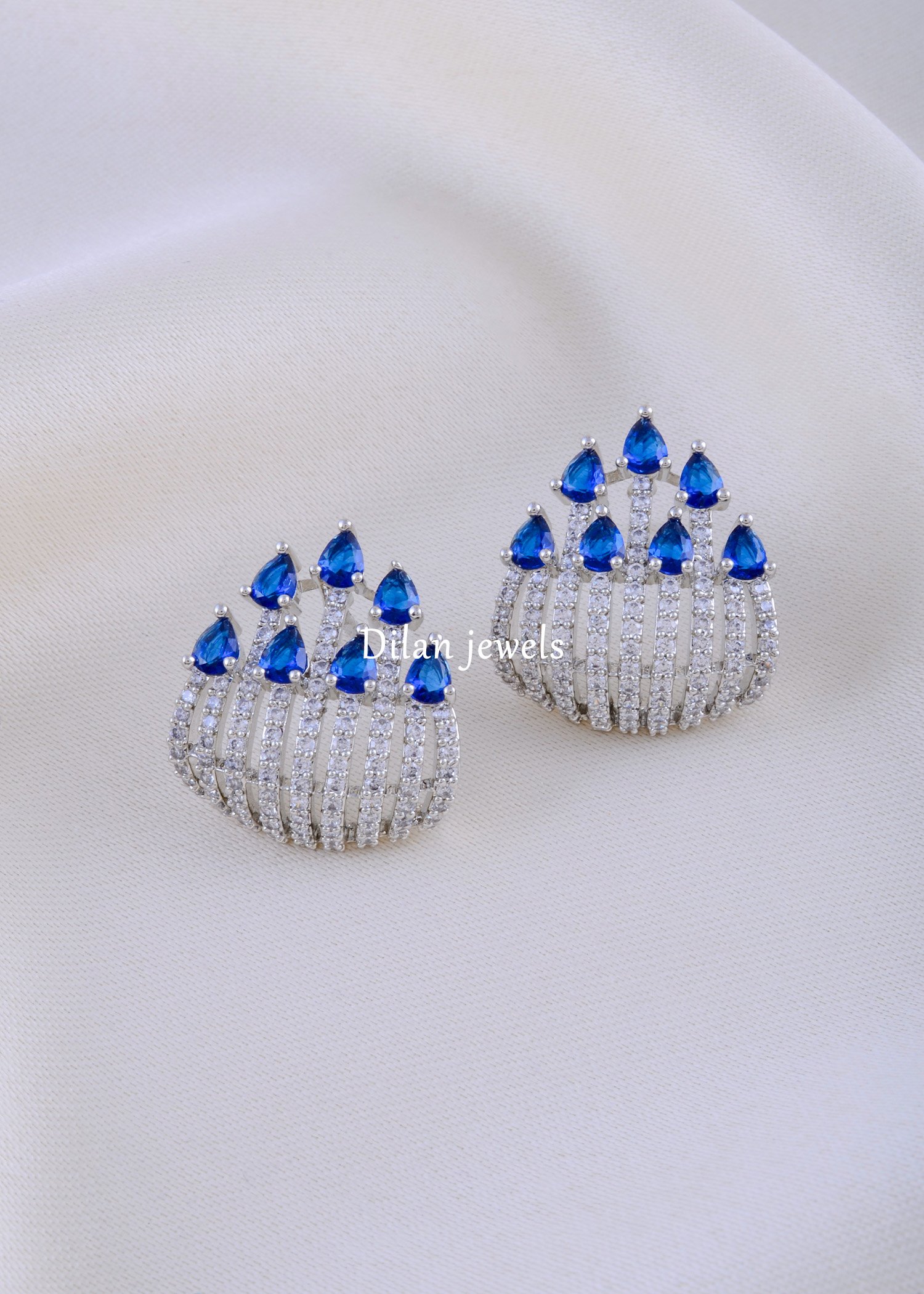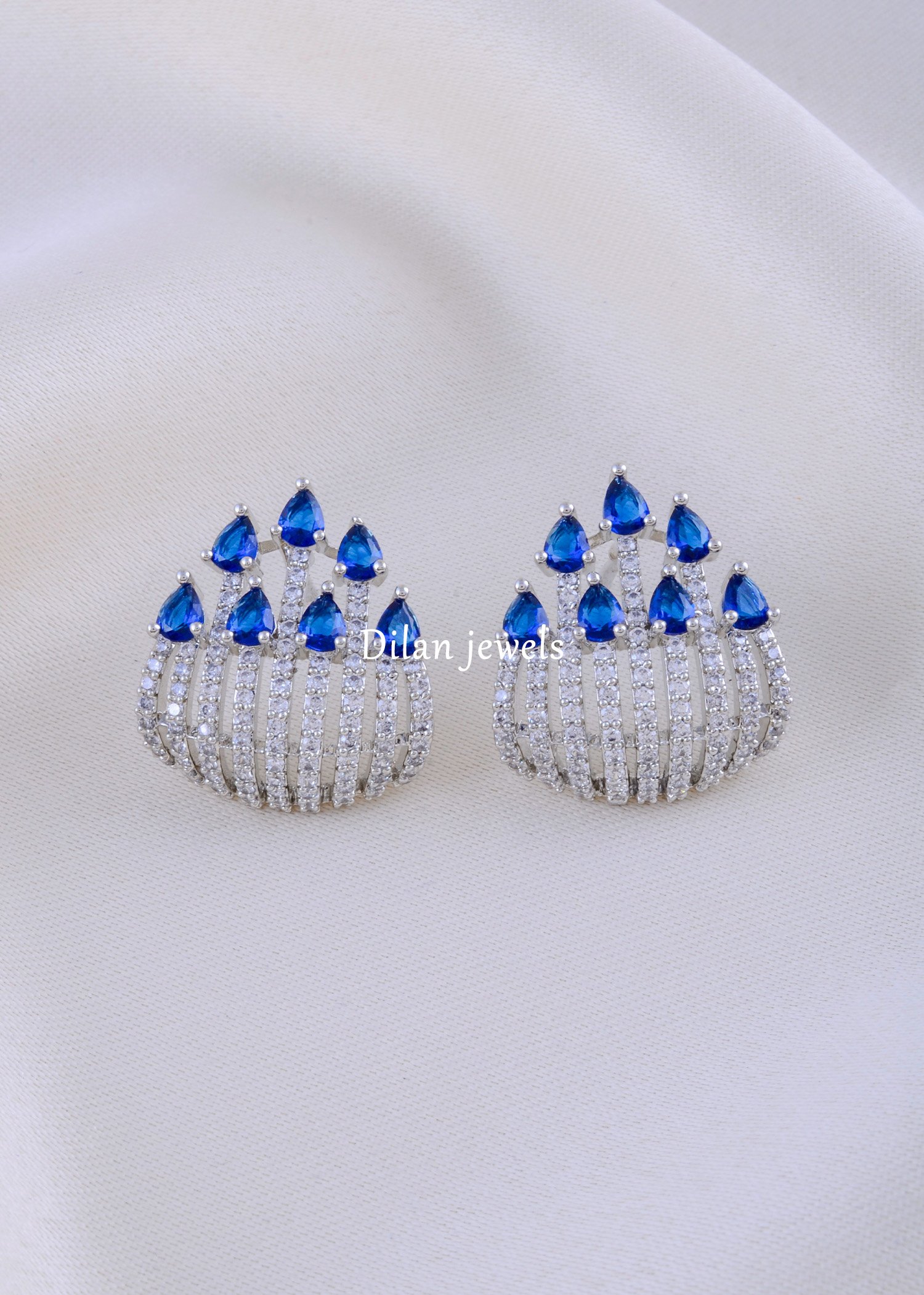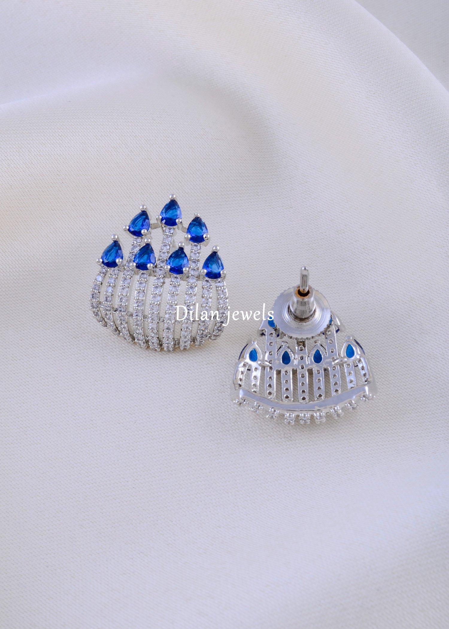 These exquisite earrings from Dilan Jewels are crafted in premium German silver and adorned with dazzling AAA-quality American diamonds. The elegant design radiates a luxurious brilliance, perfectly blending sophistication with modern style. Lightweight yet striking, these earrings elevate any outfit—from festive ensembles to evening wear—with effortless grace. The shimmering diamonds and silver detailing make them a timeless addition to your jewelry collection, reflecting unmatched craftsmanship and elegance.