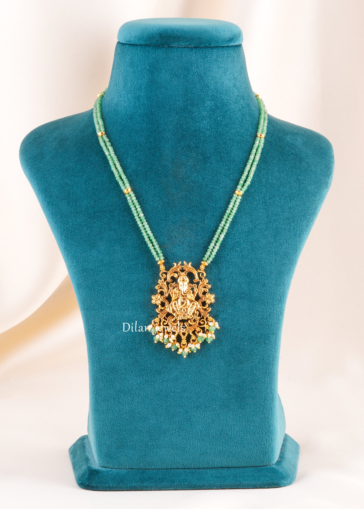 Auspicious Green Beaded Ganesha Set (Yellow Gold) NEC002488