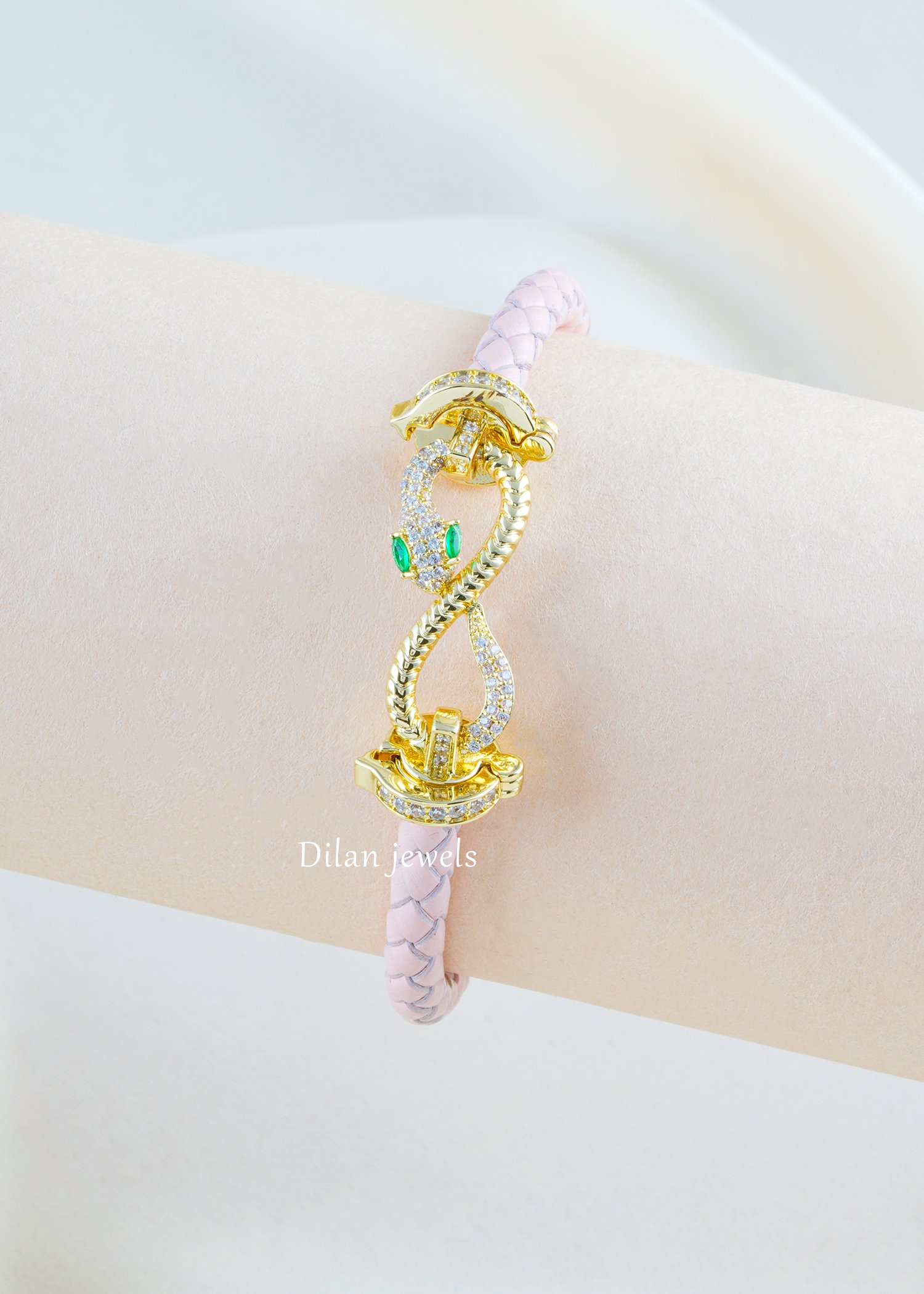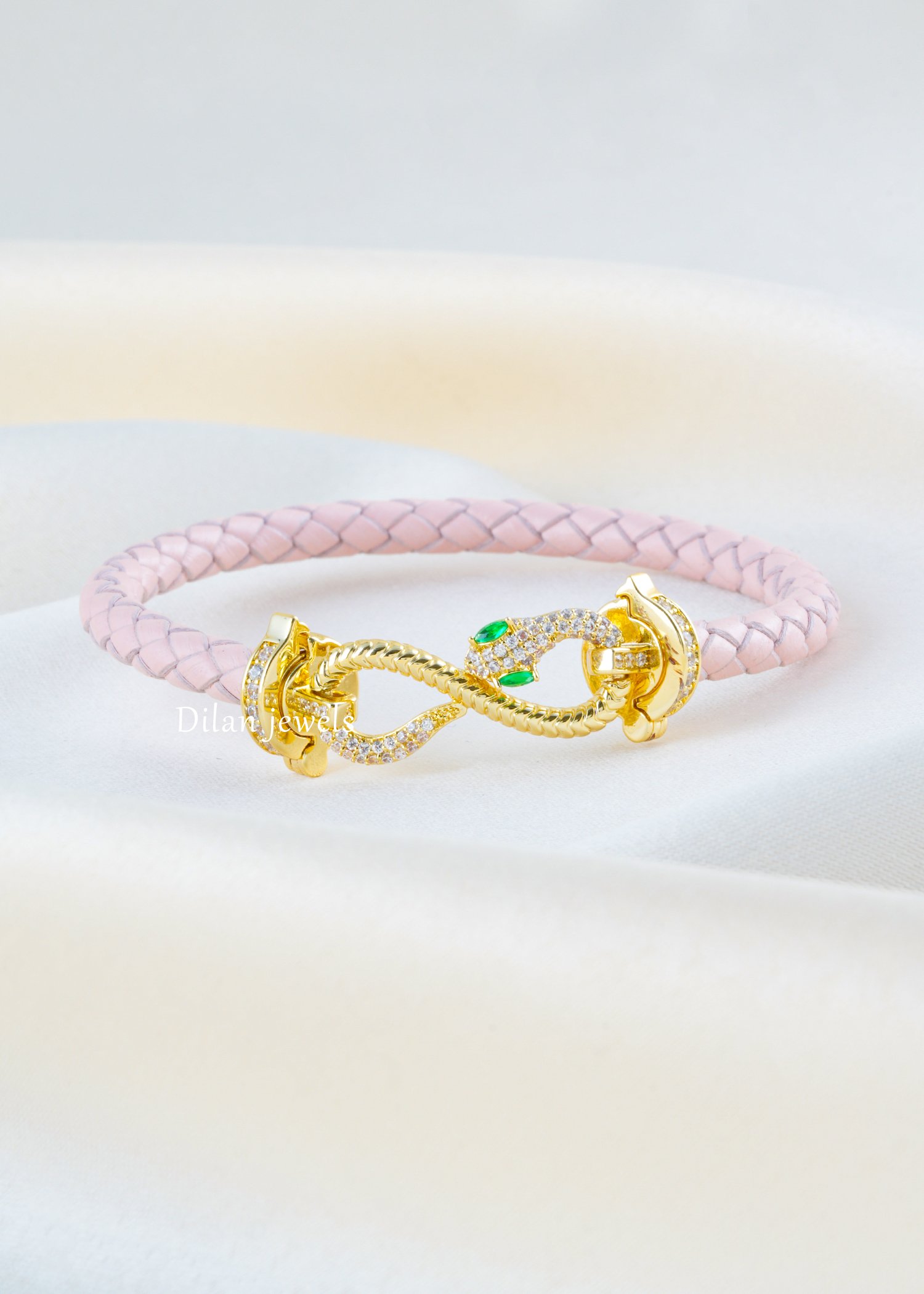 Make a bold style statement with this uniquely designed bracelet, crafted in premium German silver and embellished with AAA quality American diamonds. Featuring a striking serpent-inspired centerpiece with sparkling stone detailing and vivid green accents, this bracelet beautifully blends edgy charm with luxury elegance. The soft braided band adds a modern touch while ensuring a comfortable fit for all-day wear. Perfect for parties, festive occasions, gifting, or statement styling, this bracelet is ideal for those who love standout accessories with a fashionable and contemporary appeal.