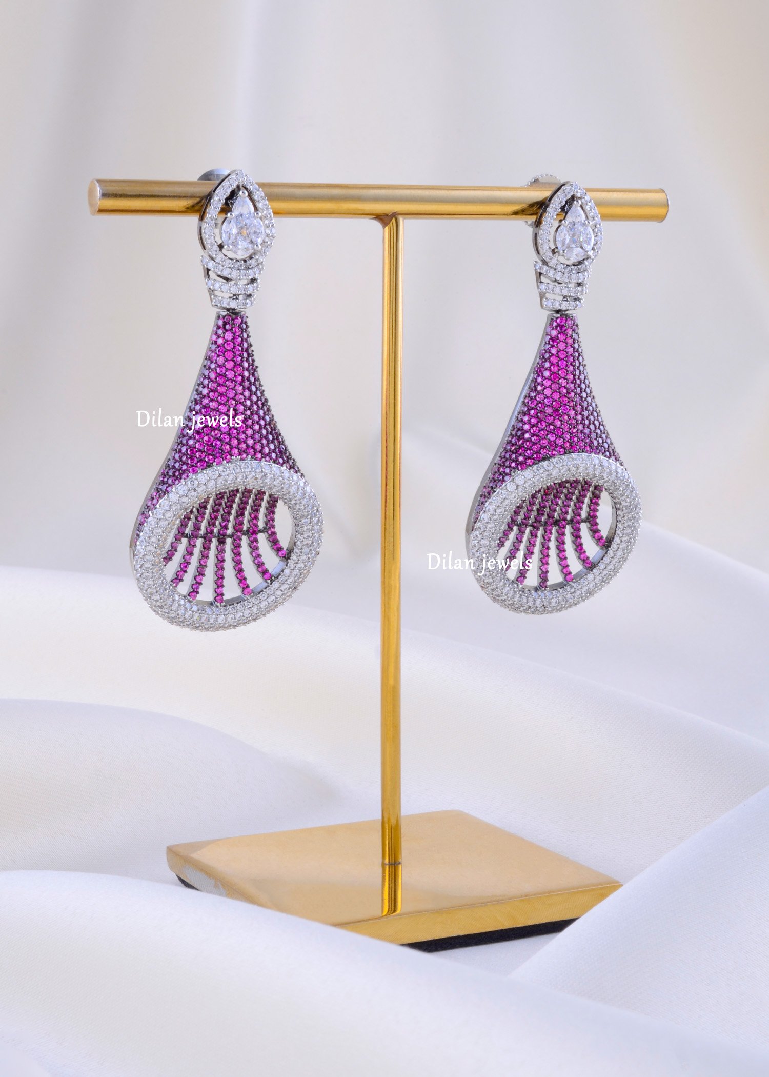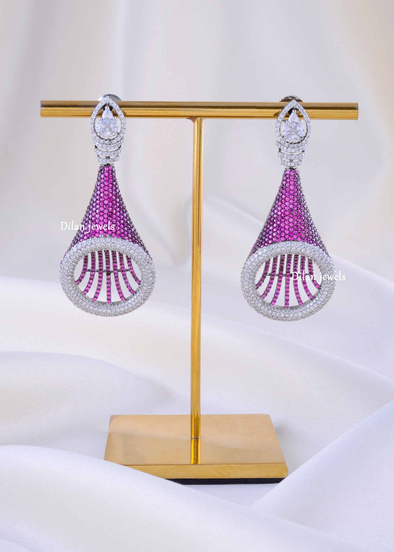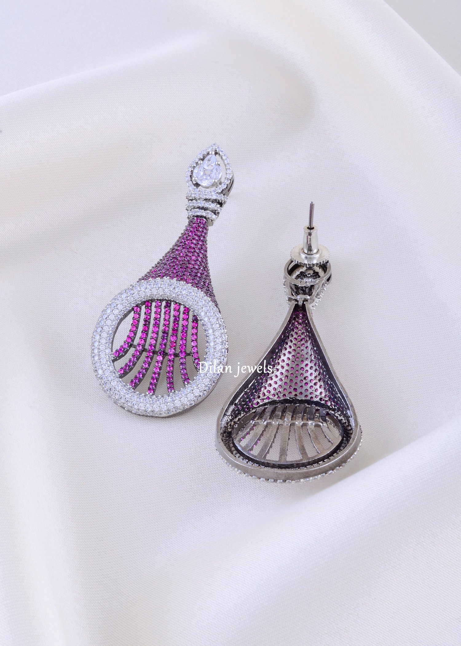 These elegant earrings are crafted in premium German silver and embellished with AAA-quality American diamonds for a radiant, high-luxury look. Designed to shine from every angle, they offer a perfect balance of sophistication and sparkle. Lightweight and comfortable, they are ideal for parties, weddings, festive occasions, or everyday glam. Their brilliant diamond‐like shine adds a touch of timeless beauty to any outfit. A perfect accessory for women who love stylish, modern, and premium-quality jewellery.