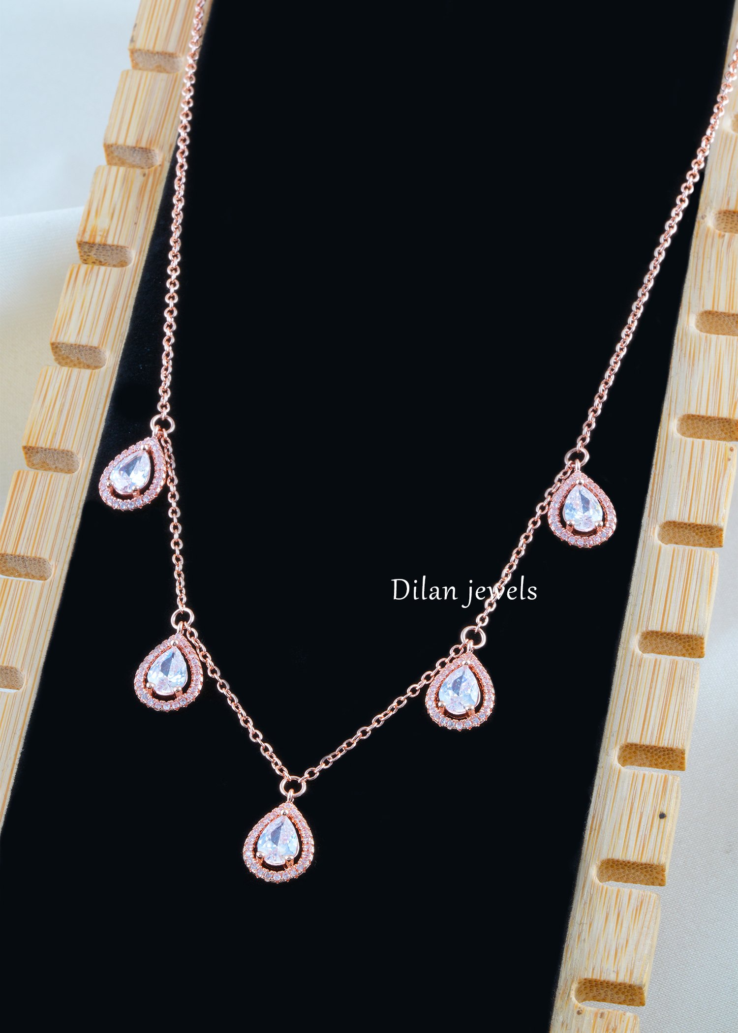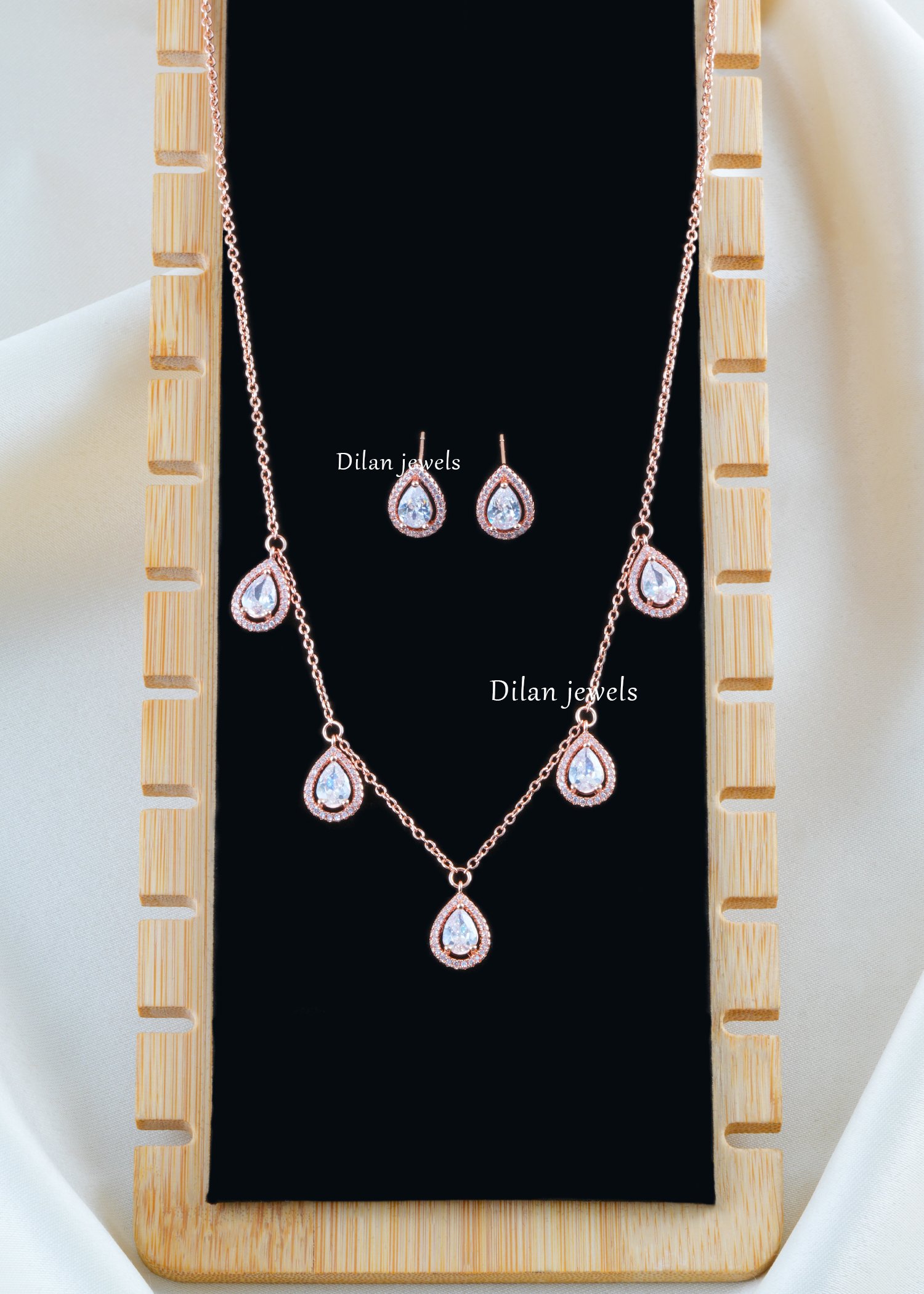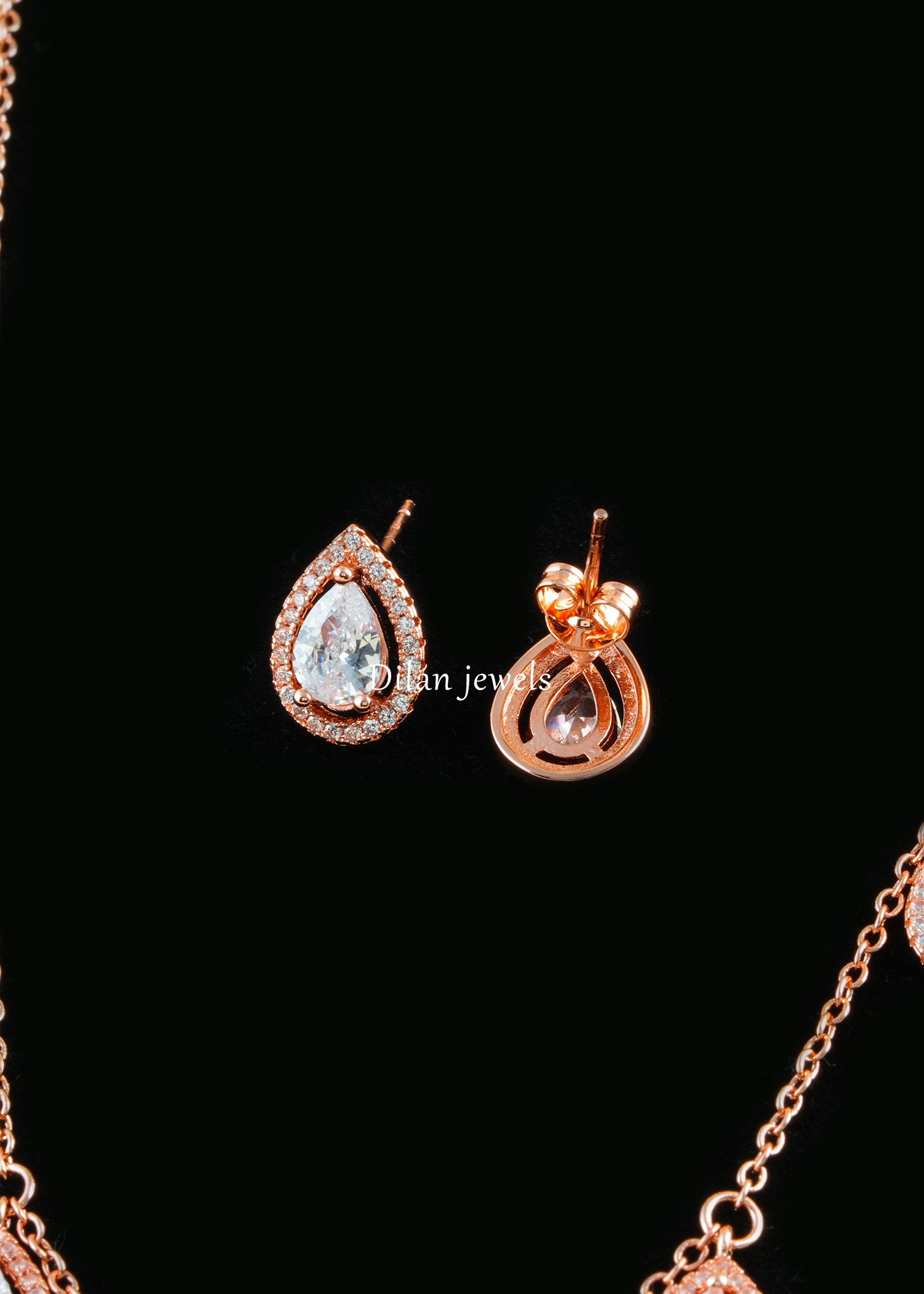 Crystal Teardrop Elegance Necklace Set (Rose Gold) NEC002574