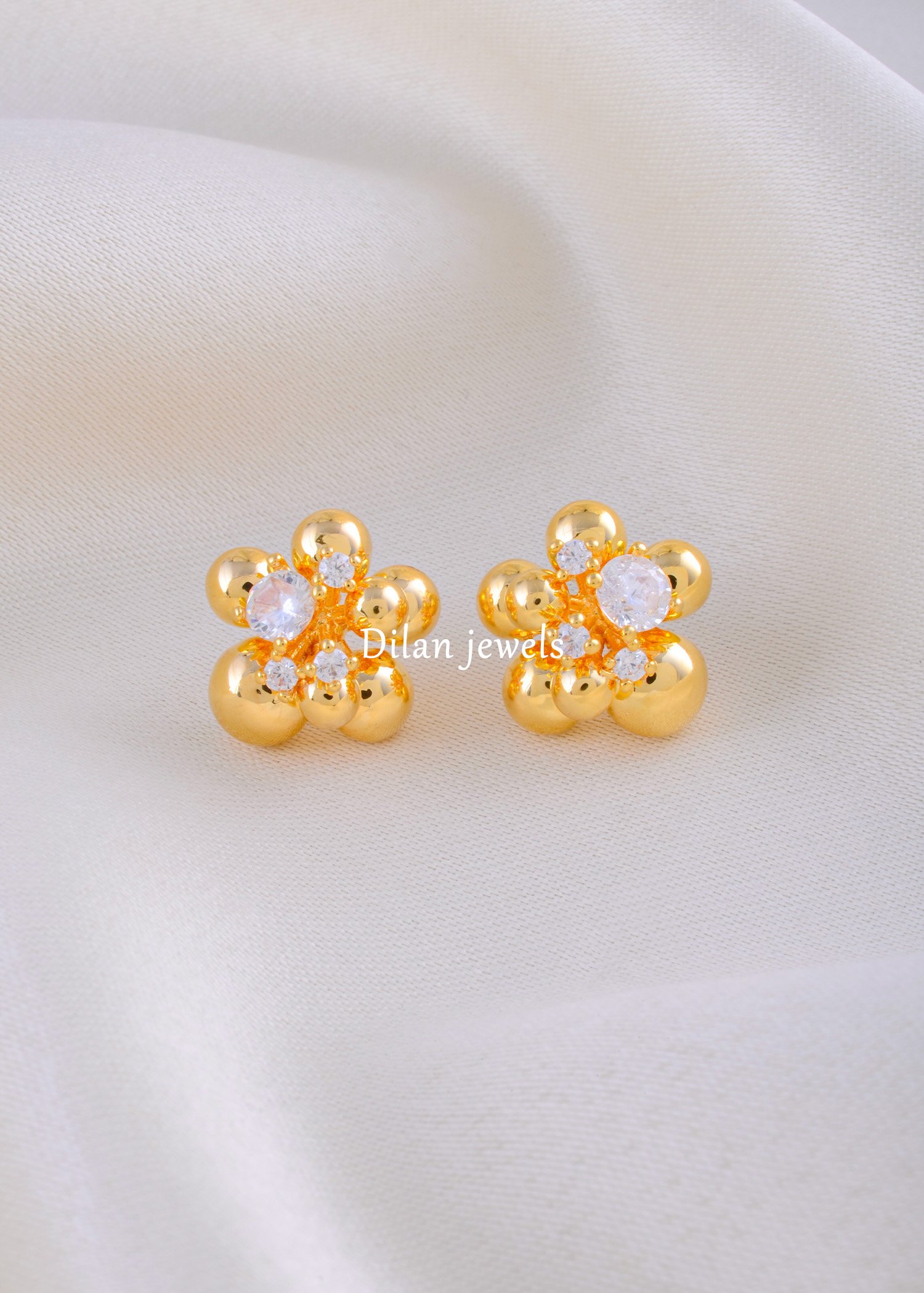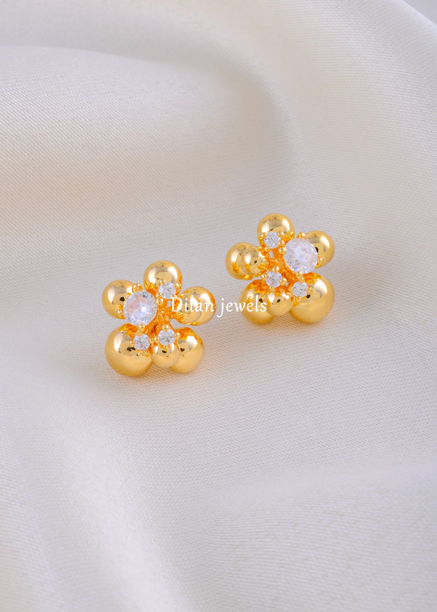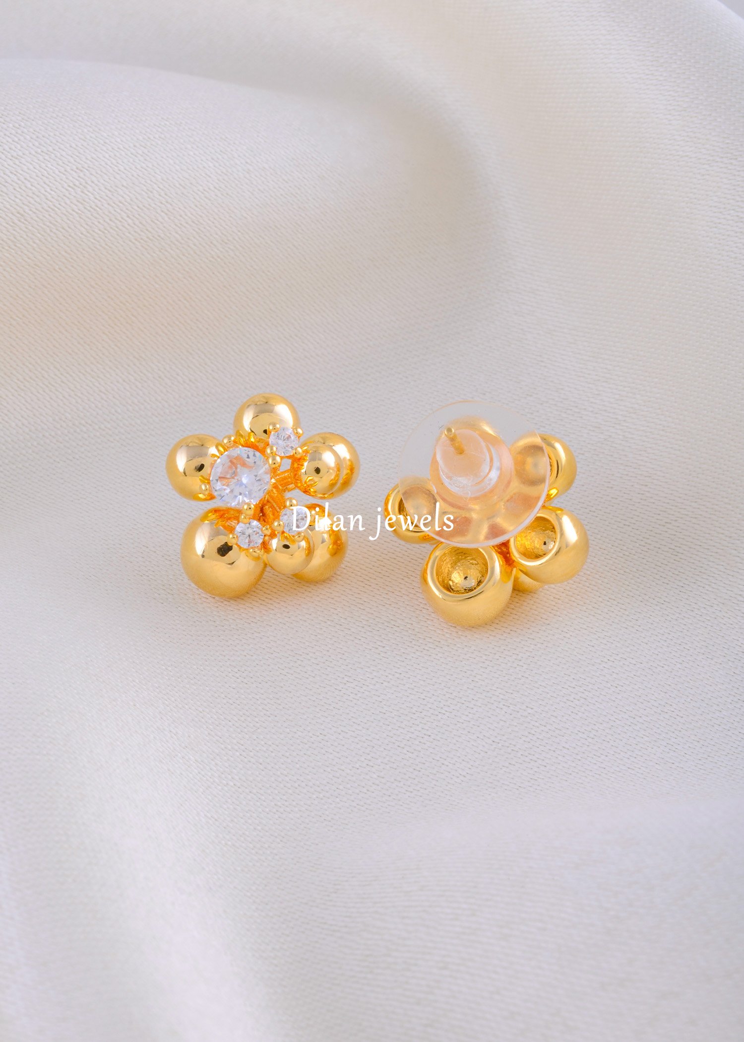 These elegant anti-tarnish earrings from Dilan Jewels are crafted in high-quality German silver and finished in radiant yellow gold for lasting shine. The floral-inspired design is embellished with AAA-quality American diamonds, adding a touch of sparkle and charm to your everyday and festive looks. Lightweight, durable, and timelessly stylish, these earrings effortlessly blend modern minimalism with classic elegance. Perfect for gifting or enhancing your own jewelry collection with a hint of refined glamour.
