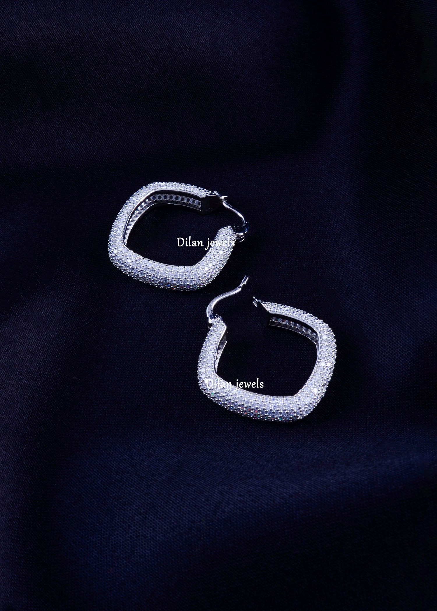 Make a bold yet sophisticated statement with these stunning German silver square hoops, intricately studded with AAA-quality American diamonds. The unique curved-square shape offers a modern twist, while the full-pave sparkle delivers a luxurious shine from every angle. Lightweight, durable, and crafted with precision, these earrings are perfect for parties, weddings, festive occasions or elevating everyday outfits. Their secure clasp ensures comfortable wear all day long. A premium accessory designed for women who love contemporary glamour combined with timeless elegance.