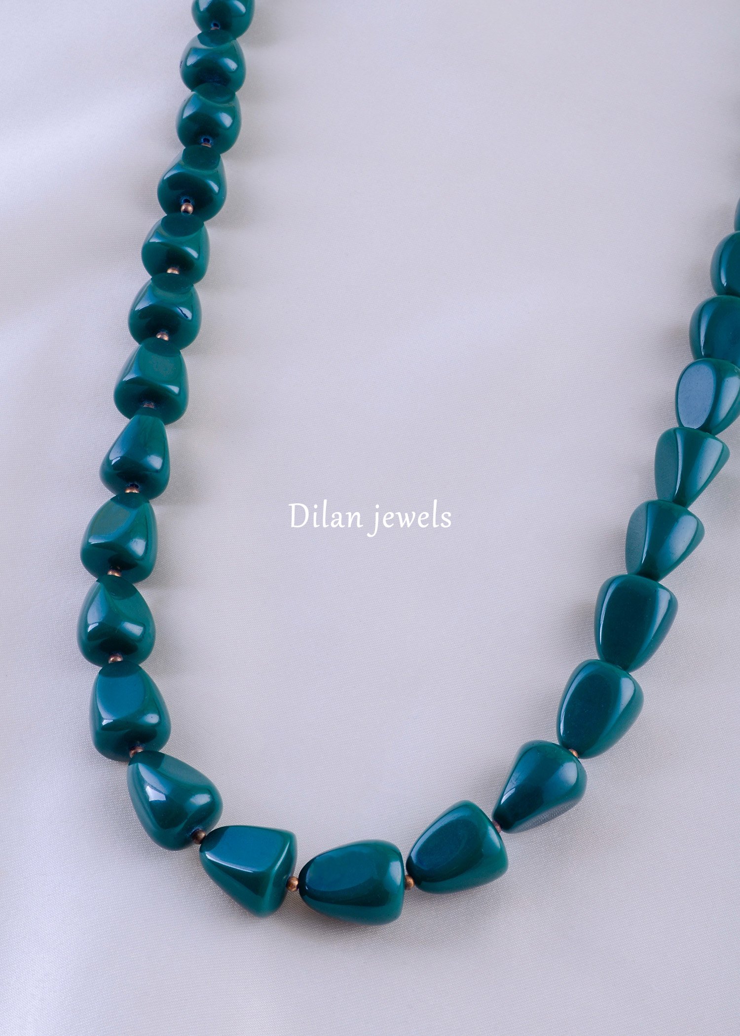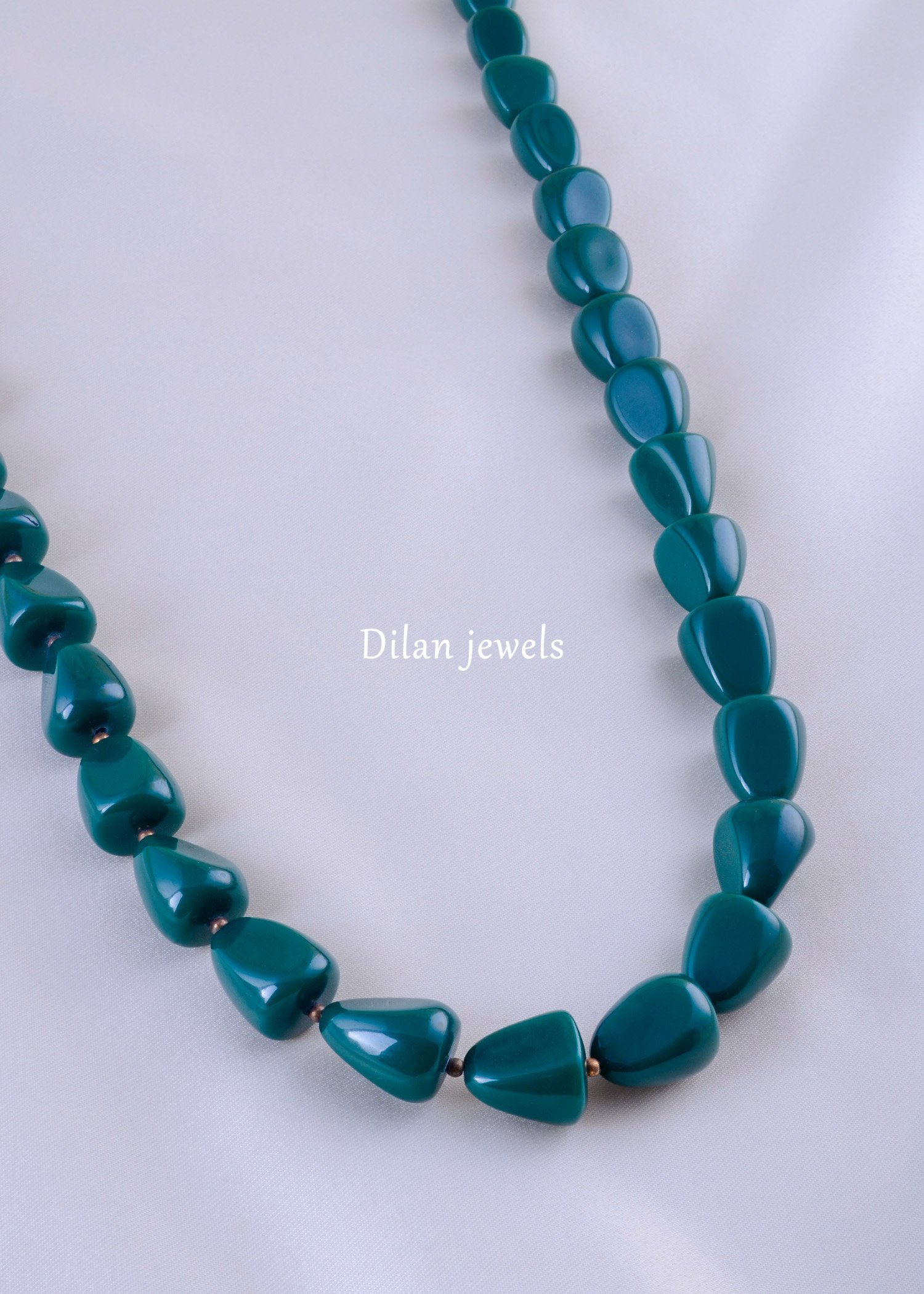 This elegant green beaded necklace from Dilan Jewels exudes a refreshing and contemporary charm. Handcrafted with smooth, glossy beads in rich emerald-green tones, the necklace radiates sophistication and balance. Its simple yet striking design makes it perfect for both traditional and modern outfits—ideal for festive occasions or daily wear. Lightweight and comfortable, it gracefully enhances your neckline while adding a vibrant pop of color. A timeless piece that blends minimalism with elegance, making it a must-have in every jewelry collection.