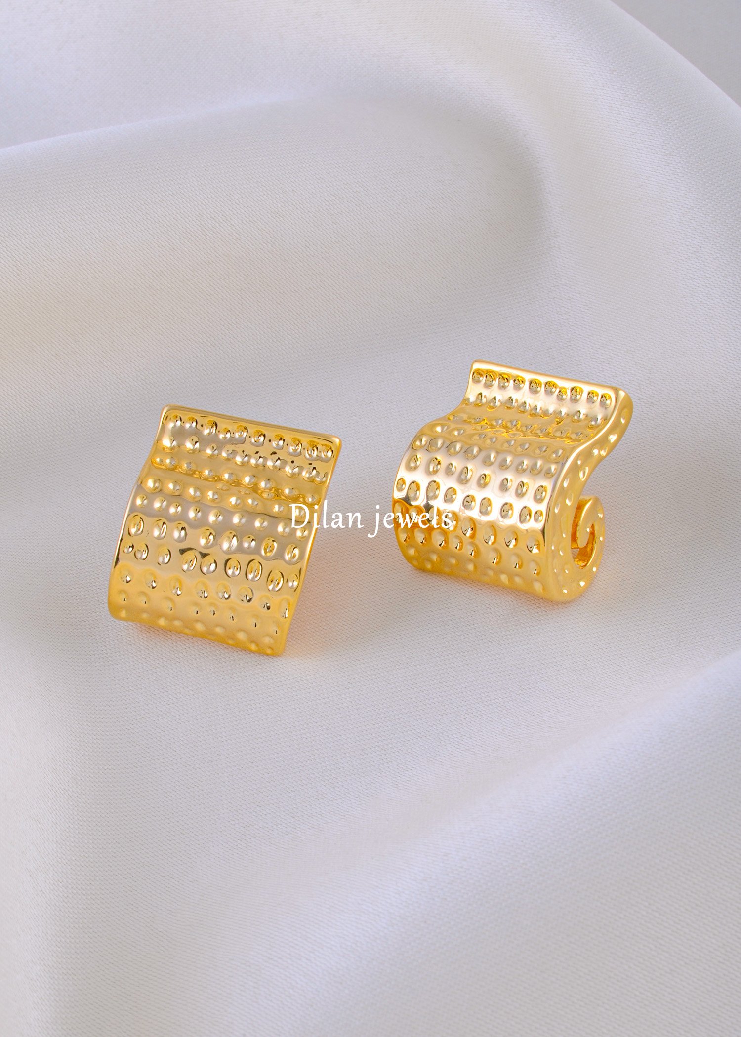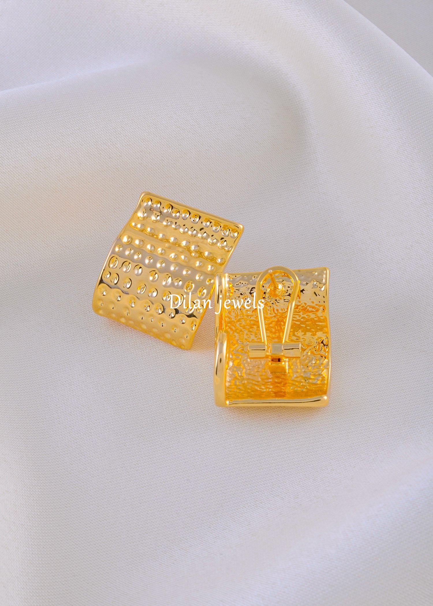 These stunning anti-tarnish earrings from Dilan Jewels are crafted from premium German silver, offering a radiant yellow gold finish that resists dullness over time. Designed in an elegant floral pattern, these earrings bring together simplicity and sophistication, making them perfect for both daily wear and special occasions. Their lightweight build ensures all-day comfort while maintaining a rich, polished look. A timeless addition to your jewelry collection, these earrings exude charm and grace in every detail.