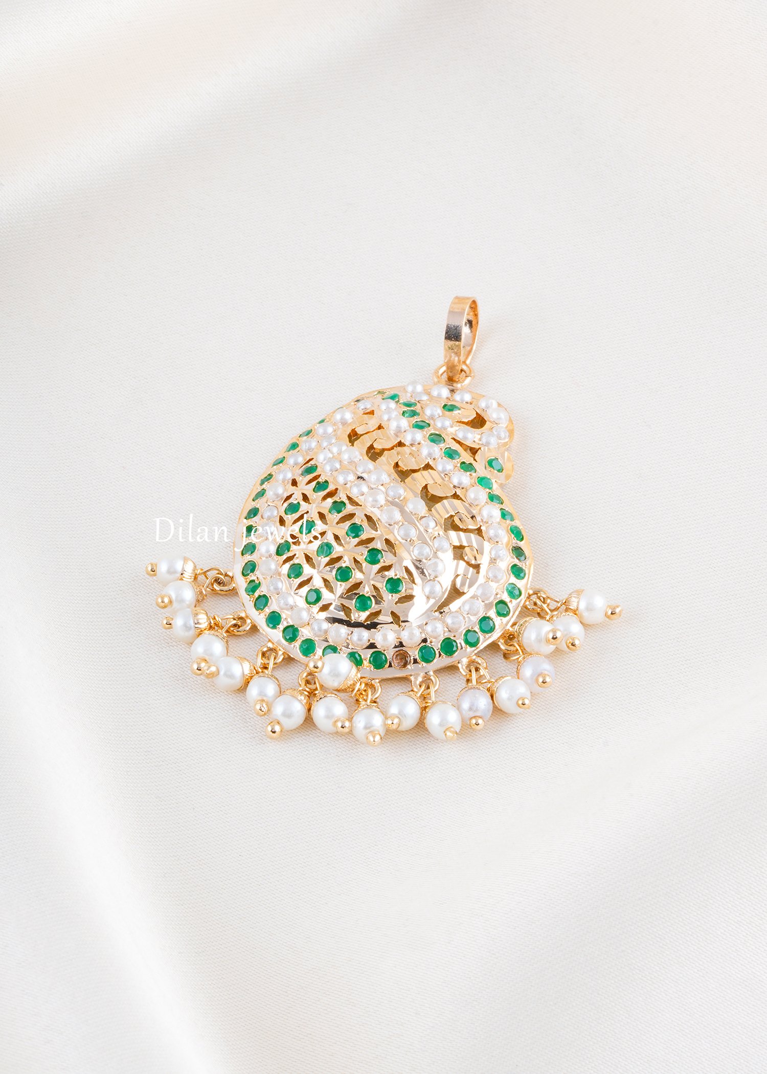 Green Stone Filigree Pearl Chandelier Pendant (Yellow Gold) PSET02475