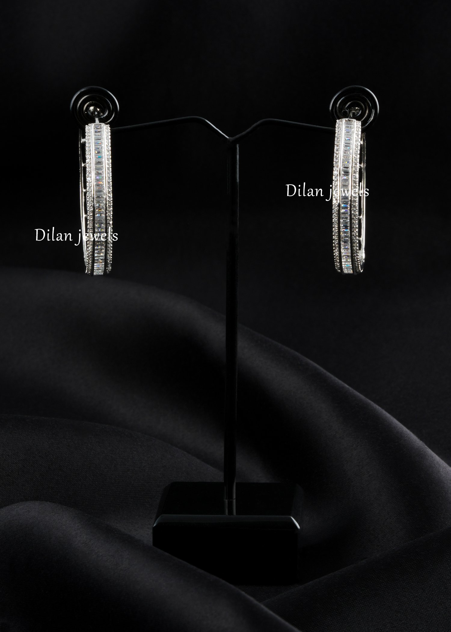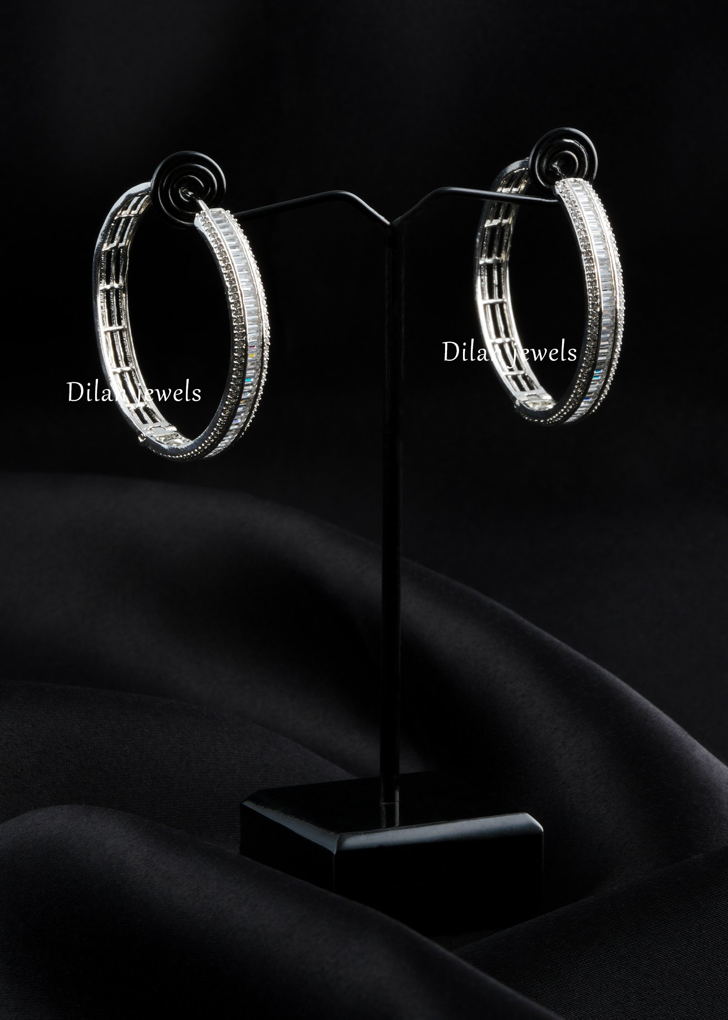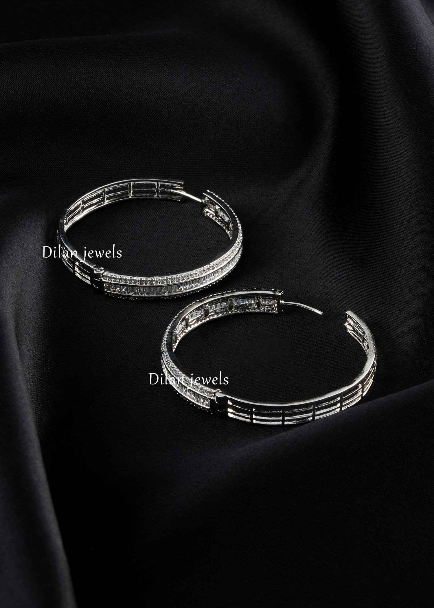 Add sleek sophistication to your jewelry collection with these elegant hoop earrings, crafted in premium German silver and embellished with AAA quality American diamonds. Designed with a refined circular silhouette, the earrings feature a striking line of baguette stones framed by delicate sparkling accents for a clean, luxurious finish. Their timeless design makes them perfect for everyday glam, parties, dinners, festive occasions, and modern statement styling. Lightweight yet eye-catching, these hoops pair beautifully with both western and ethnic looks, making them a versatile must-have for any jewelry lover.