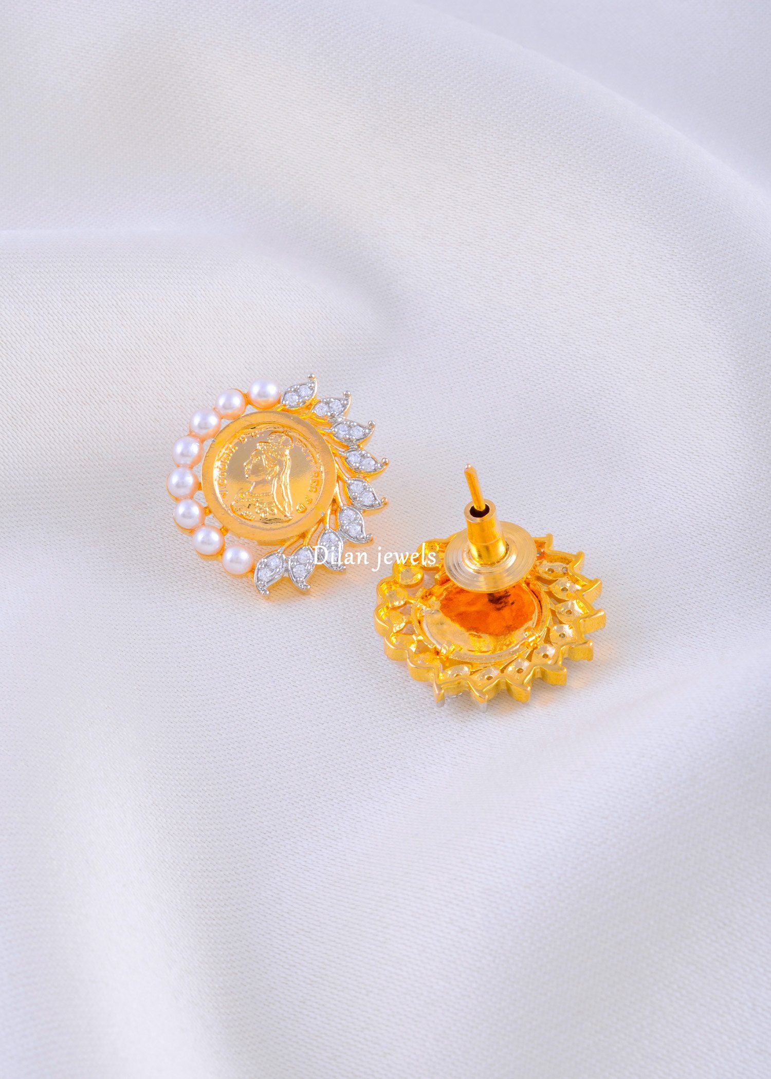 This elegant pendant set is beautifully crafted from premium German silver and adorned with AAA-quality American Diamonds and lustrous pearls. The vintage coin-style center design adds a royal charm, perfectly complemented by the sparkling AD leaf motifs that surround it. The matching earrings enhance the overall richness, making this set ideal for festive occasions, traditional events, and special celebrations. Lightweight yet luxurious, this pendant set blends classic heritage with modern craftsmanship, offering a timeless accessory for women who appreciate unique and graceful jewellery.