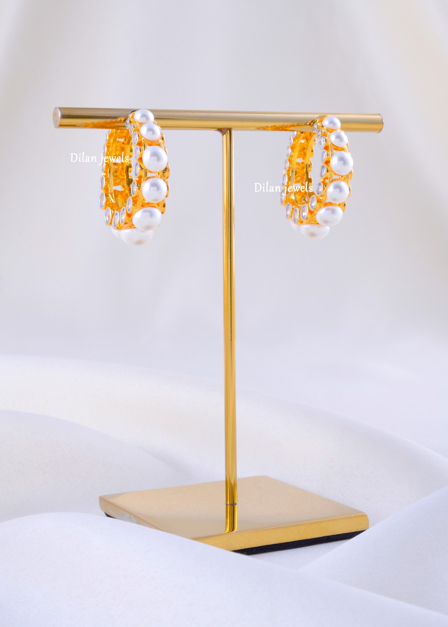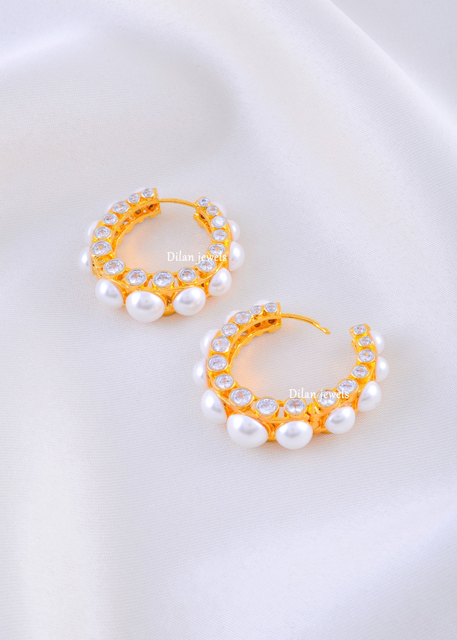 These stunning hoop earrings are crafted in premium German silver and beautifully embellished with AAA-grade American diamonds alongside lustrous pearls. The combination of sparkling stones and classic pearls creates a perfect balance of sophistication and contemporary charm. Lightweight and comfortable, they offer a radiant finish that elevates any outfit—be it casual, ethnic, or festive wear. Designed for women who appreciate timeless elegance, these earrings add a graceful touch to your jewellery collection and make an exquisite choice for gifting or special occasions.