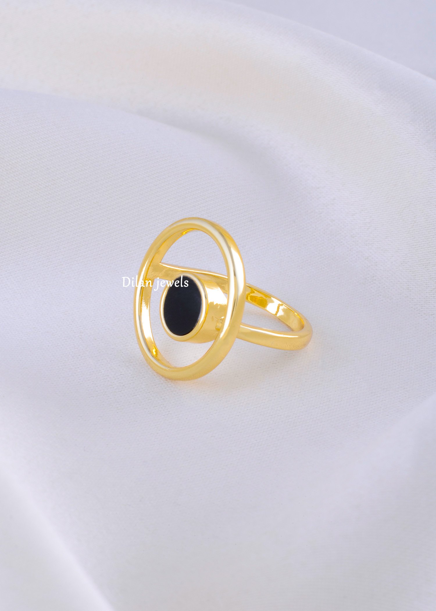 Elevate your everyday style with this chic and modern statement ring, crafted with a sleek gold-tone finish and a bold black enamel center. Designed in a unique open-circle silhouette, it blends minimalism with contemporary elegance, making it perfect for daily wear or stylish layering. The smooth edges and lightweight design ensure all-day comfort, while the striking contrast of gold and black adds a touch of sophistication to any outfit. Whether paired with Western or Indo-fusion looks, this versatile ring is a must-have accessory for effortless luxury.