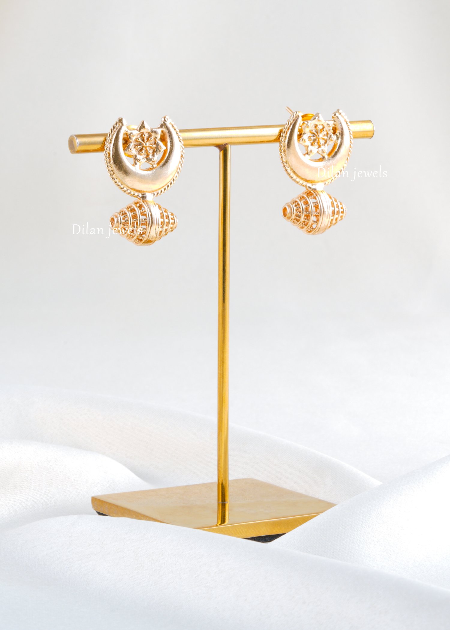 Elevate your look with these crescent drop earrings, handcrafted in high–polish German silver. A delicate floral motif sits inside a crescent frame, finished with an intricate conch‑inspired dangler for subtle movement and shine. Lightweight yet eye‑catching, they pair beautifully with kurtis, sarees or fusion outfits. Perfect for festive occasions, small functions or everyday glam, these earrings add a touch of modern elegance to traditional style. Thoughtfully designed anti-tarnish finish keeps them gleaming wear after wear, making them a versatile jewellery-box essential.