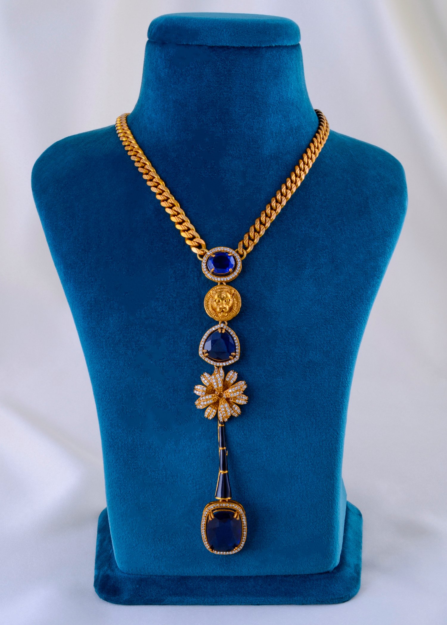 Elevate your elegance with this stunning necklace and earrings set, crafted from premium German silver and adorned with exquisite blue stones. Featuring AAA quality American diamonds, this set promises brilliance and durability, backed by a lifetime guarantee on the stones. The adjustable chain length of 18″-20″ ensures a perfect fit, while the striking front motif length of 6″ adds a touch of sophistication to any outfit. Perfect for both casual and formal occasions, this jewelry set is a must-have for your collection.