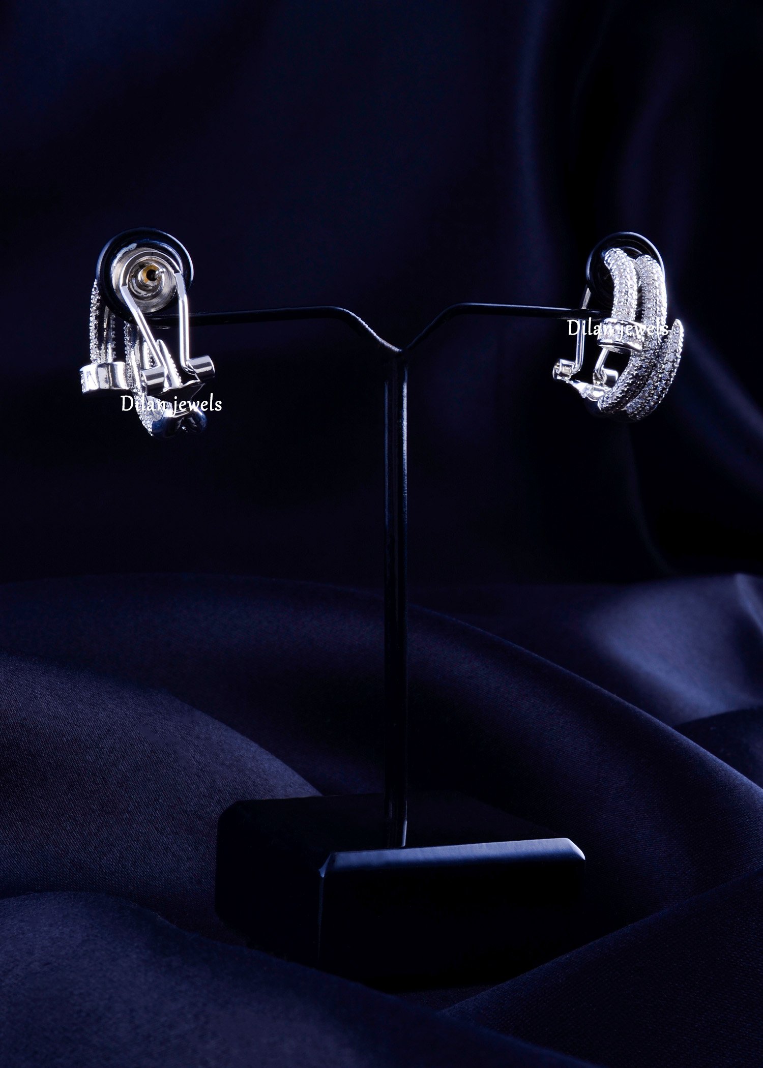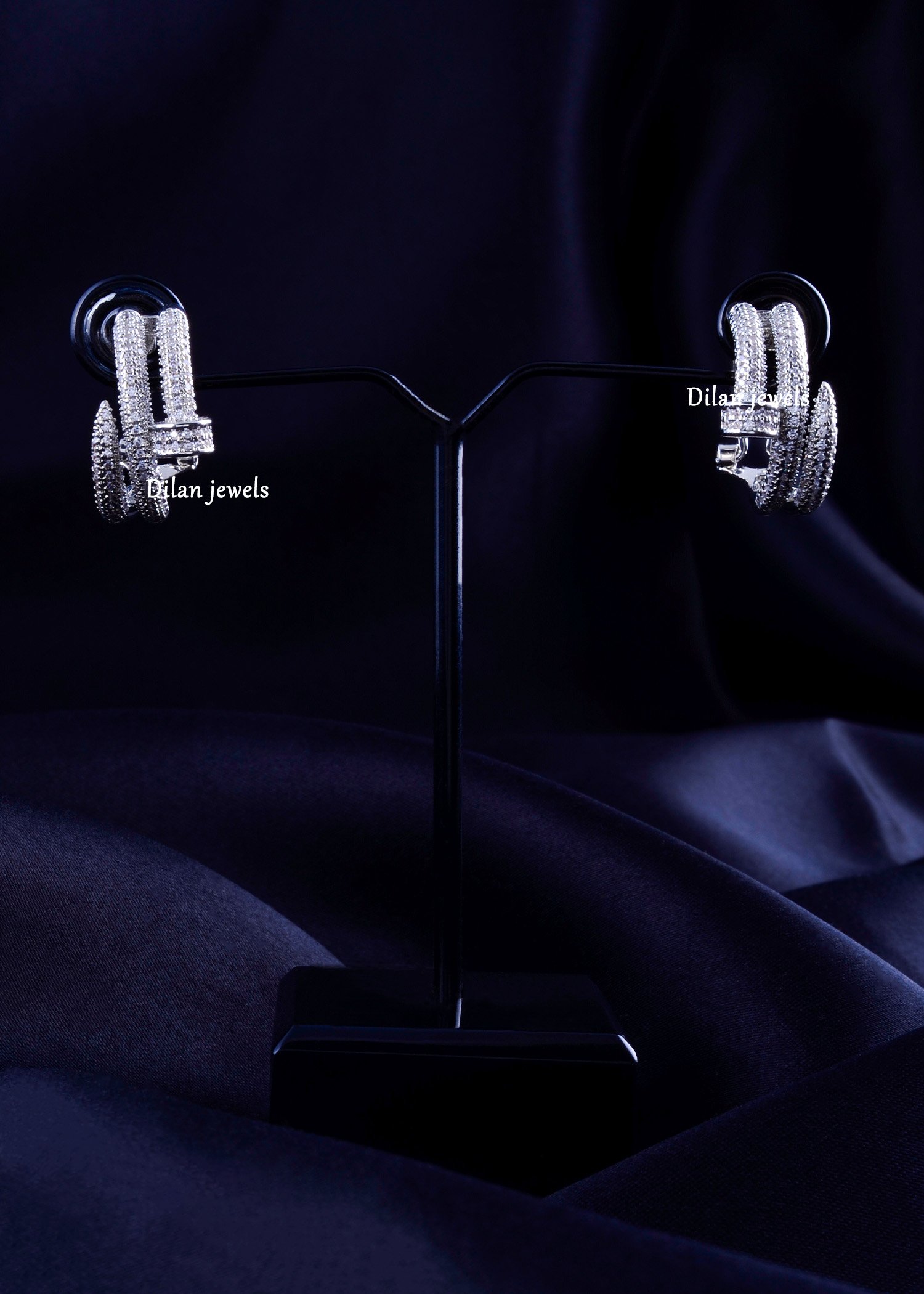 Make a bold fashion statement with these Silver Pave Nail Huggie Hoops. Inspired by modern industrial design, these earrings feature a chic, avant-garde silhouette resembling a bent nail wrapping elegantly around the earlobe. Crafted from premium German Silver, the entire surface is meticulously encrusted with AAA quality American Diamonds (Cubic Zirconia), softening the edgy shape with luxurious, high-end sparkle. Perfect for the fashion-forward woman, these unique hoops blend rebellious charm with sophisticated glamour, making them an instant conversation starter for parties or trendy street-style looks.