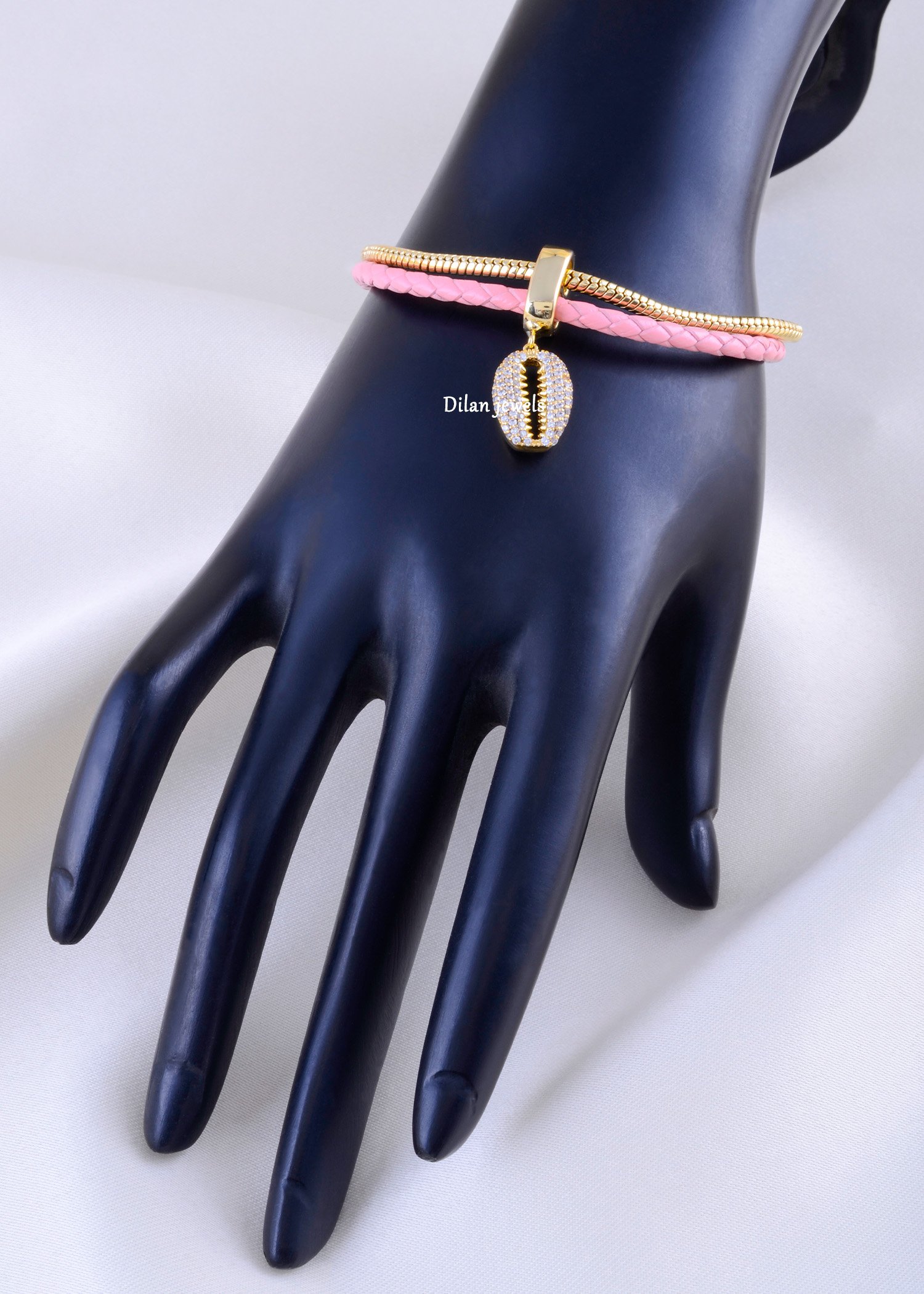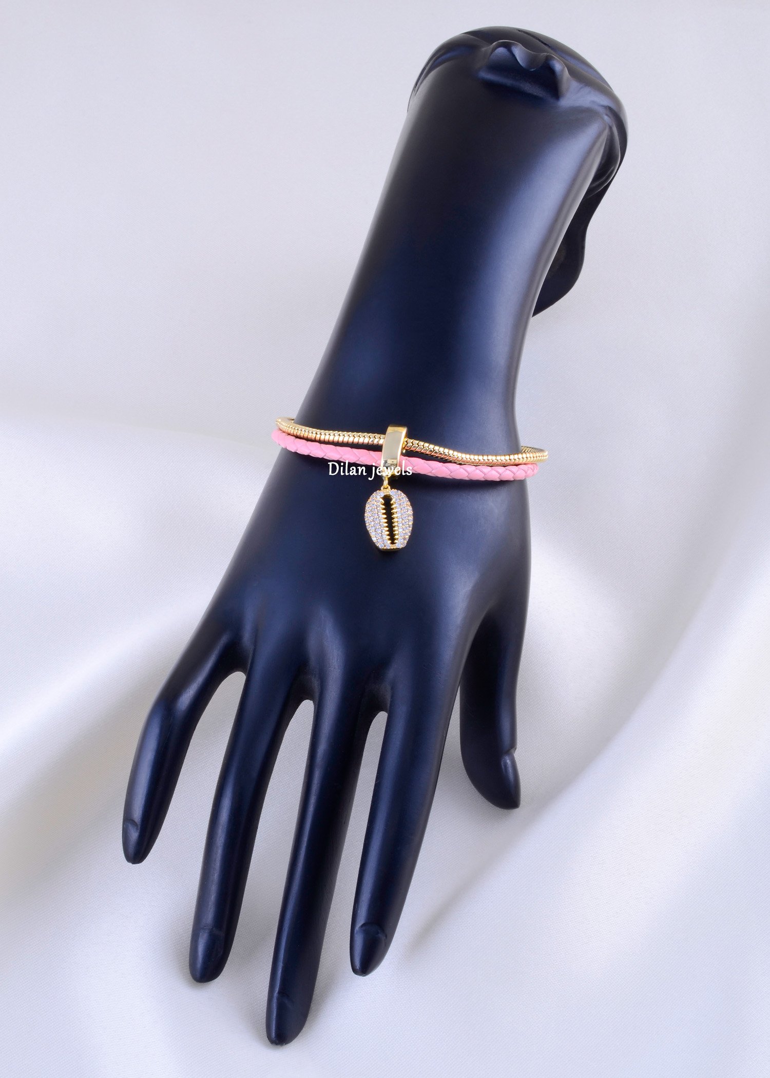 Elevate your everyday look with this stylish openable bracelet, crafted in premium German silver and adorned with AAA-quality American diamonds. Its dual-band design combines a soft pink braided strap with a sleek metallic finish, while the diamond-studded dangler charm adds a chic and luxurious touch. Lightweight, durable, and comfortable to wear all day, it offers a perfect balance of elegance and versatility. Whether you pair it with ethnic wear, western outfits, or office looks, this bracelet promises effortless sophistication and a statement-making sparkle.