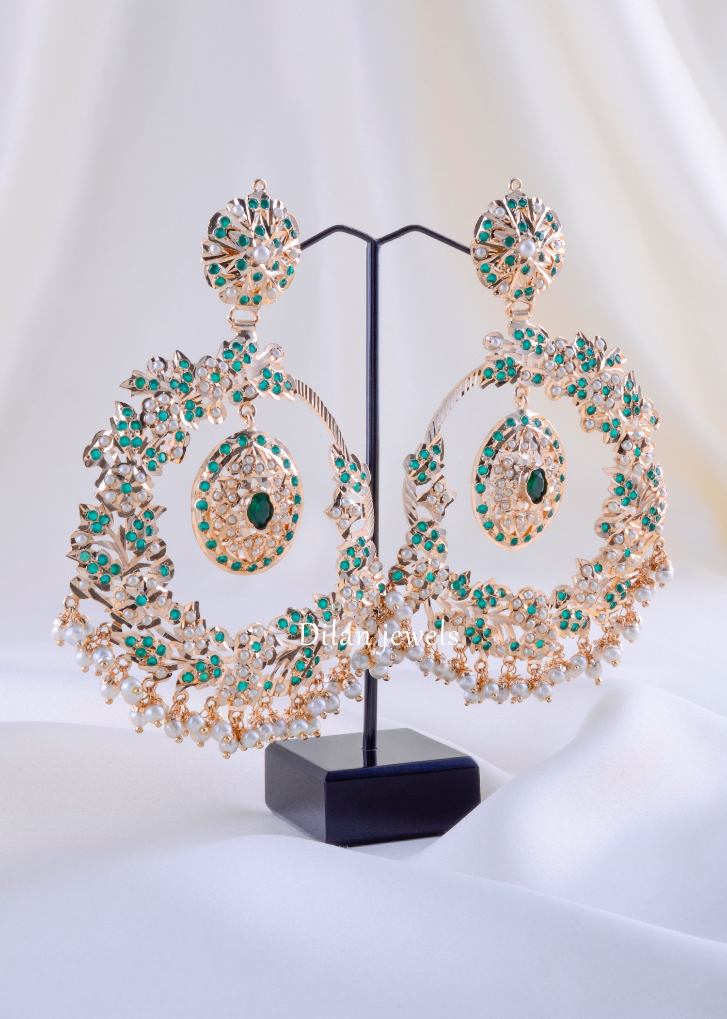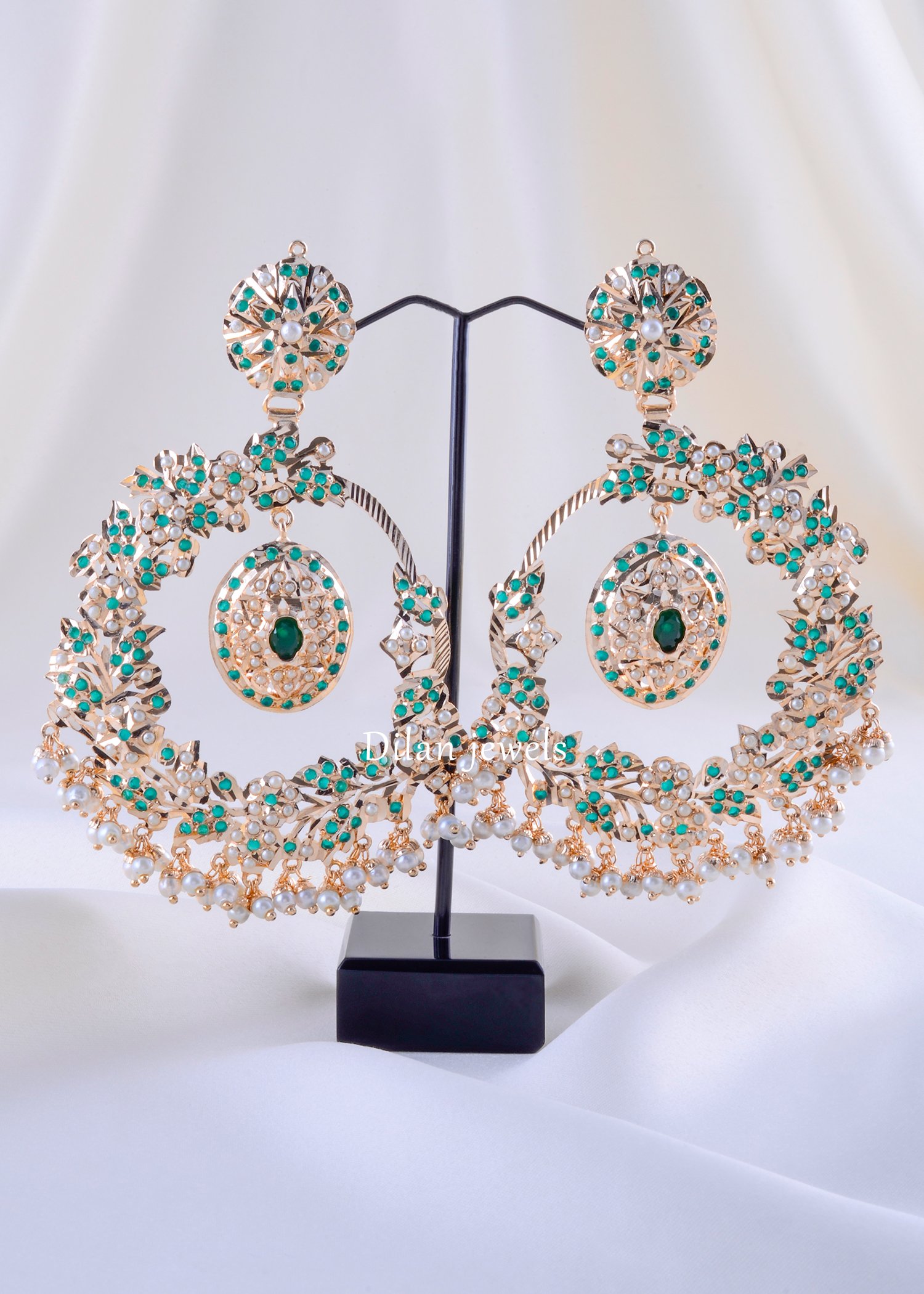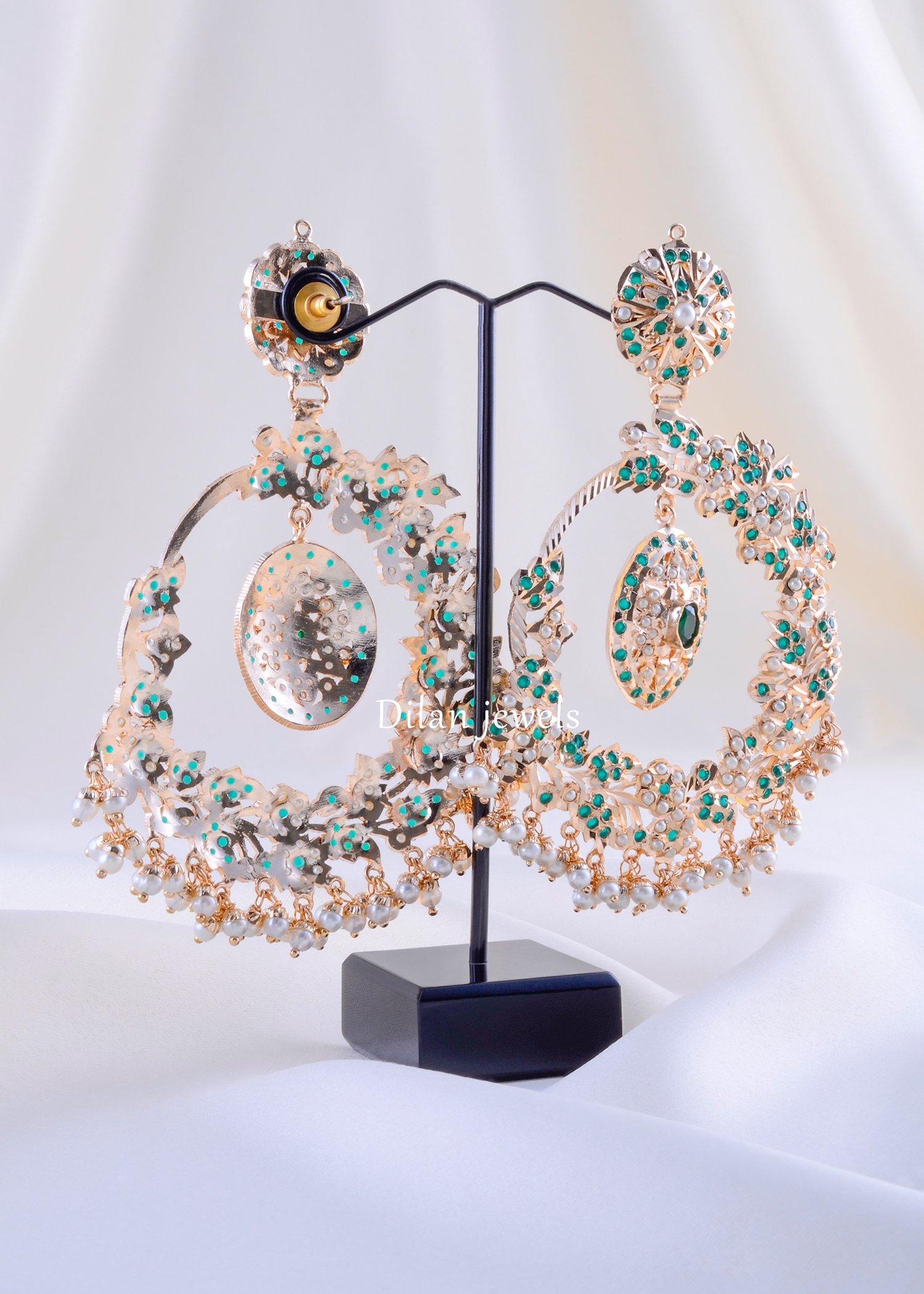 Make a breathtaking statement with these exquisite chandelier earrings, meticulously crafted from premium German Silver with a rose gold-tone finish. Featuring an ornate, multi-layered design adorned with shimmering turquoise and emerald gemstones interspersed with lustrous pearl-like beads. The top features delicate filigree floral motifs with an emerald focal stone, while the dangling lower section showcases cascading pearl drops that create elegant movement and dimension. These earrings exude opulent craftsmanship and traditional grandeur, making them perfect for weddings, festivals, or special occasions. Lightweight yet dramatically stunning, these versatile beauties elevate any traditional or contemporary ensemble with timeless sophistication.