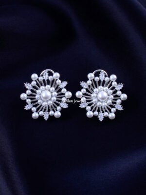 Zirconia Flower Web Hoops ( Silver...