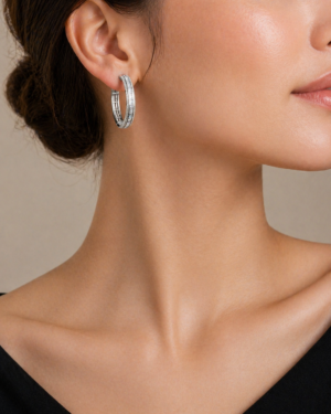 🔵 Metal: German Silver (Silver Alloy) 🔵 Stones: AAA+ Quality American Diamonds 🔵 Closure Type: Hoops 🔵 Length: 4.25cm 🔵 Plating: Silver 🔵 Lifetime Guarantee on stones 🔵 For Jewellery Care, please refer here 🔵 For Exchange Policy, please refer here