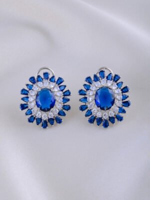 Sapphire Bloom Earrings (Silver)...