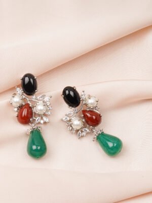 Semi Precious Stone Earrings (Silver)...
